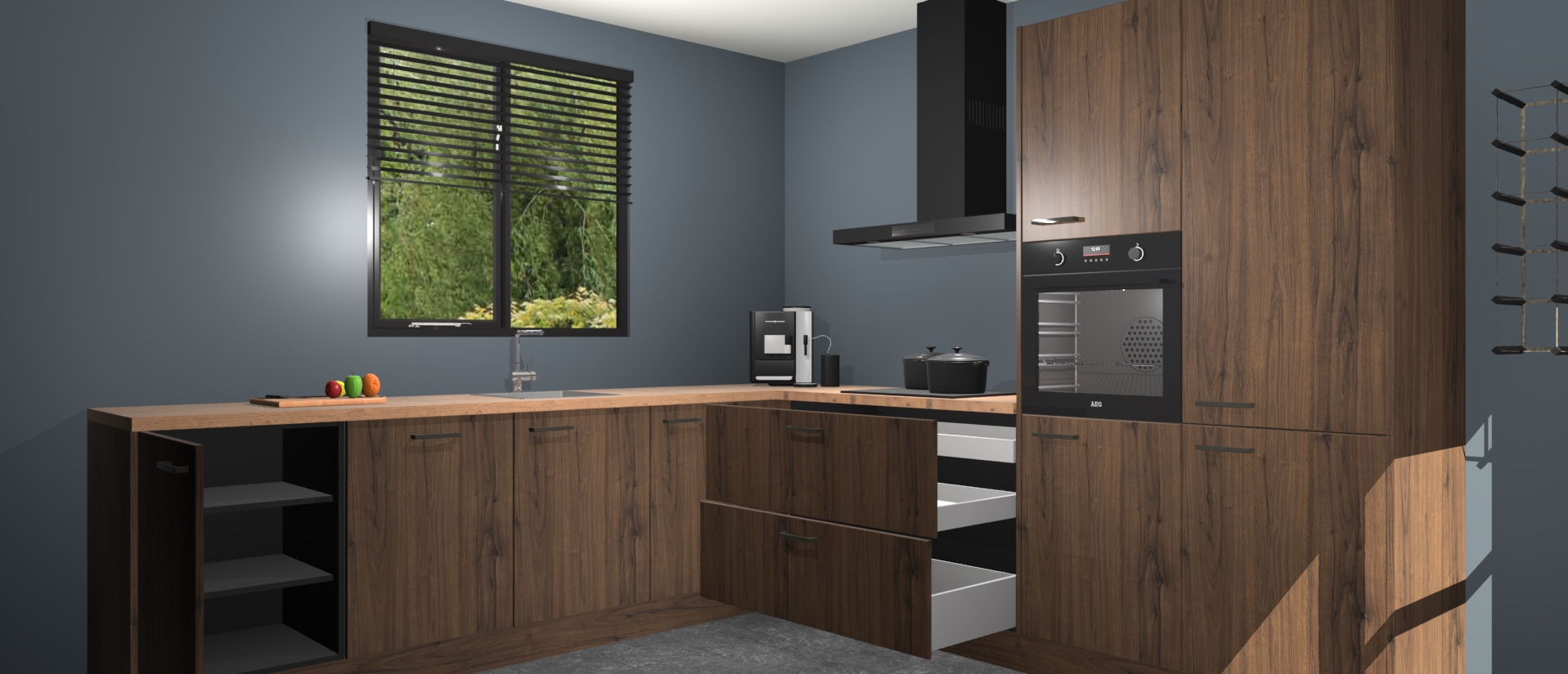 De Noten keuken Porto heeft 5 ingebouwde apparaten - een oven, inductiekookplaat, afzuigkap, vaatwasser en koelkast - waarmee u in een handomdraai heerlijke gerechten bereidt. Soft-close deuren zorgen voor nog meer functionaliteit en gemak. En dit alles voor een onverslaanbaar vaste prijs. En als u nu bestelt, duurt de levering maar 7 weken! Wat nog ongelooflijker is, is dat onze kasten voor gemonteerd worden geleverd.