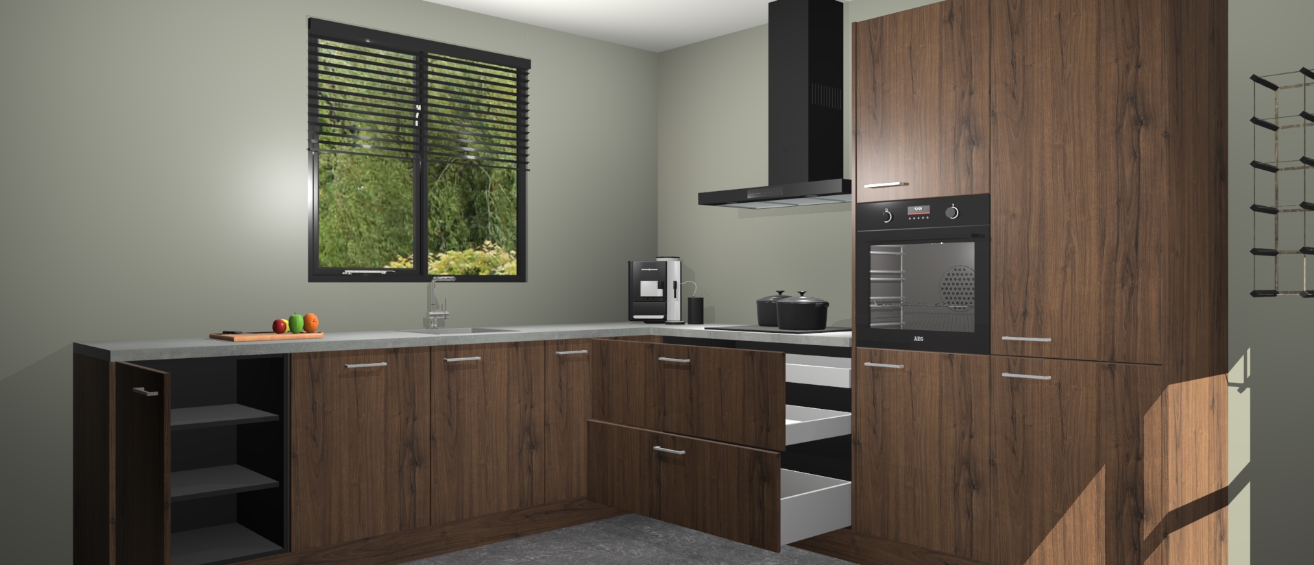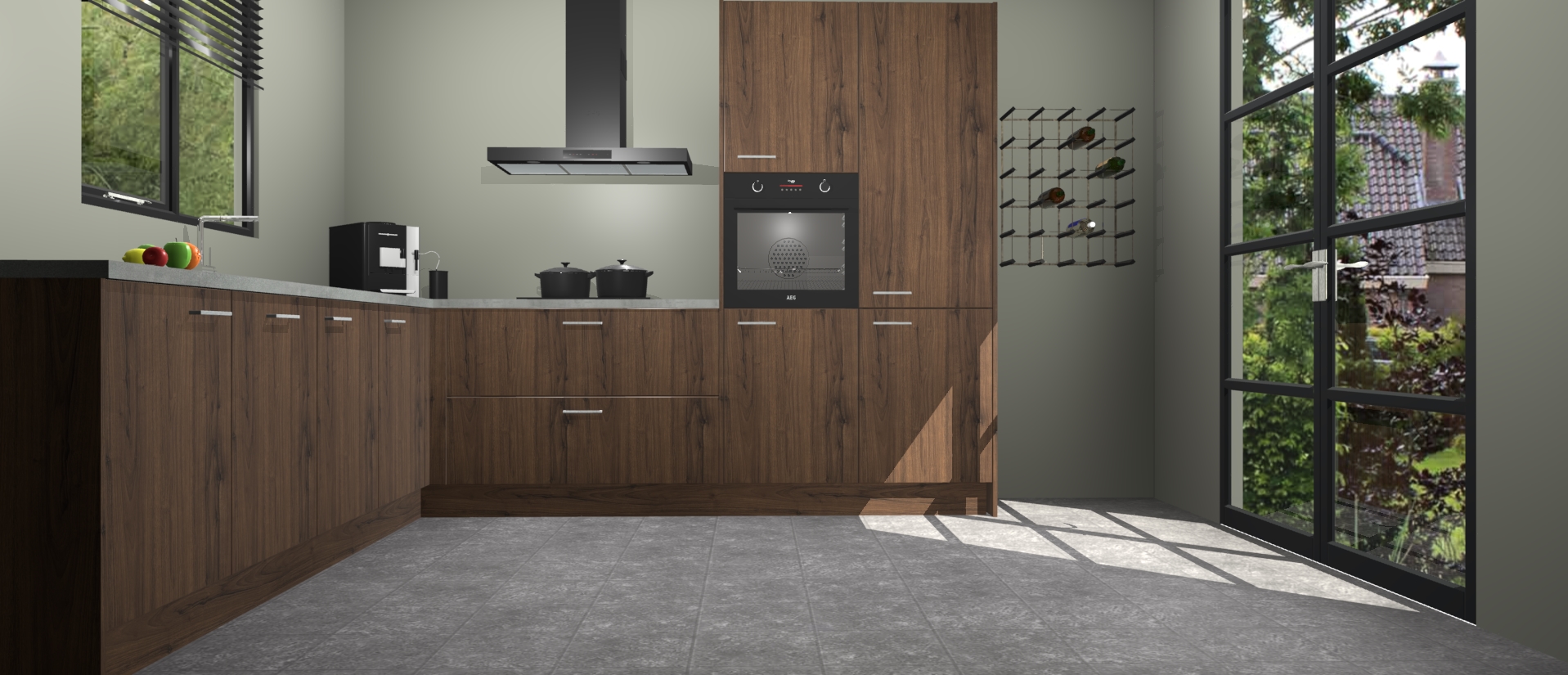 De Noten keuken Porto heeft 5 ingebouwde apparaten - een oven, inductiekookplaat, afzuigkap, vaatwasser en koelkast - waarmee u in een handomdraai heerlijke gerechten bereidt. Soft-close deuren zorgen voor nog meer functionaliteit en gemak. En dit alles voor een onverslaanbaar vaste prijs. En als u nu bestelt, duurt de levering maar 7 weken! Wat nog ongelooflijker is, is dat onze kasten voor gemonteerd worden geleverd.