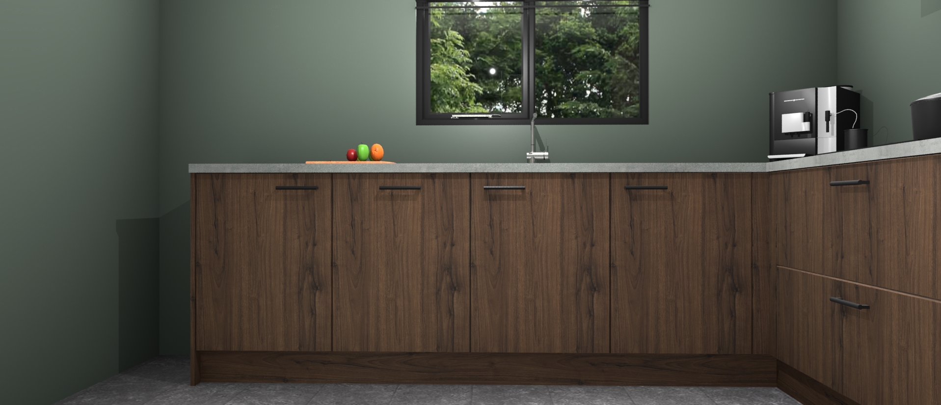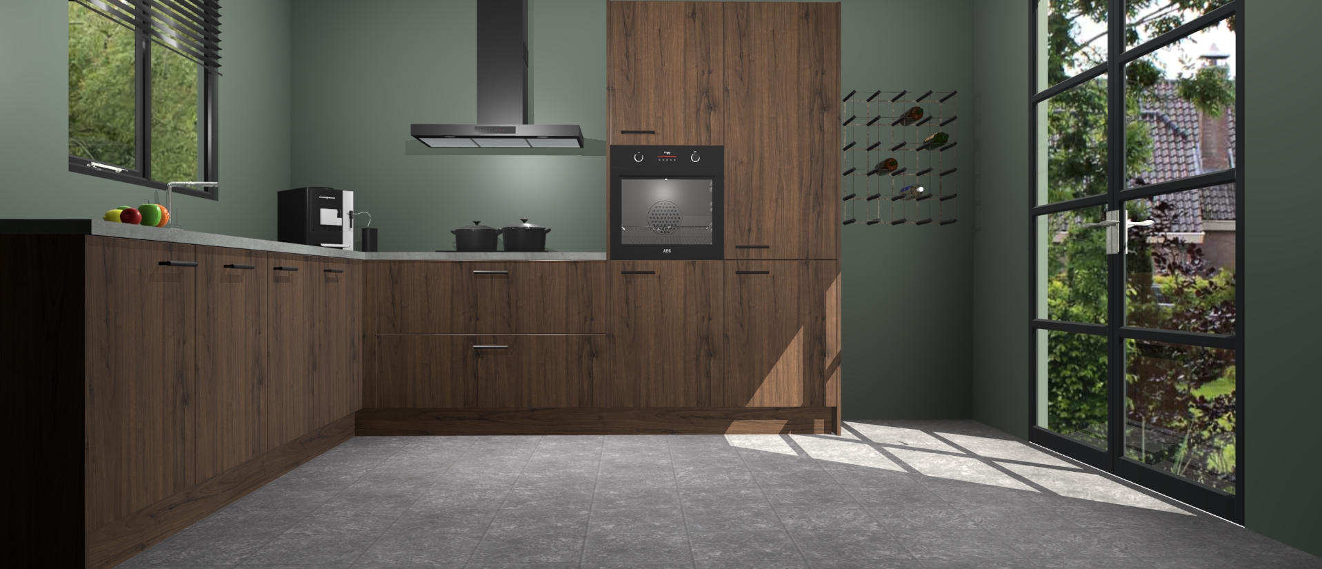 De Noten keuken Porto heeft 5 ingebouwde apparaten - een oven, inductiekookplaat, afzuigkap, vaatwasser en koelkast - waarmee u in een handomdraai heerlijke gerechten bereidt. Soft-close deuren zorgen voor nog meer functionaliteit en gemak. En dit alles voor een onverslaanbaar vaste prijs. En als u nu bestelt, duurt de levering maar 7 weken! Wat nog ongelooflijker is, is dat onze kasten voor gemonteerd worden geleverd.