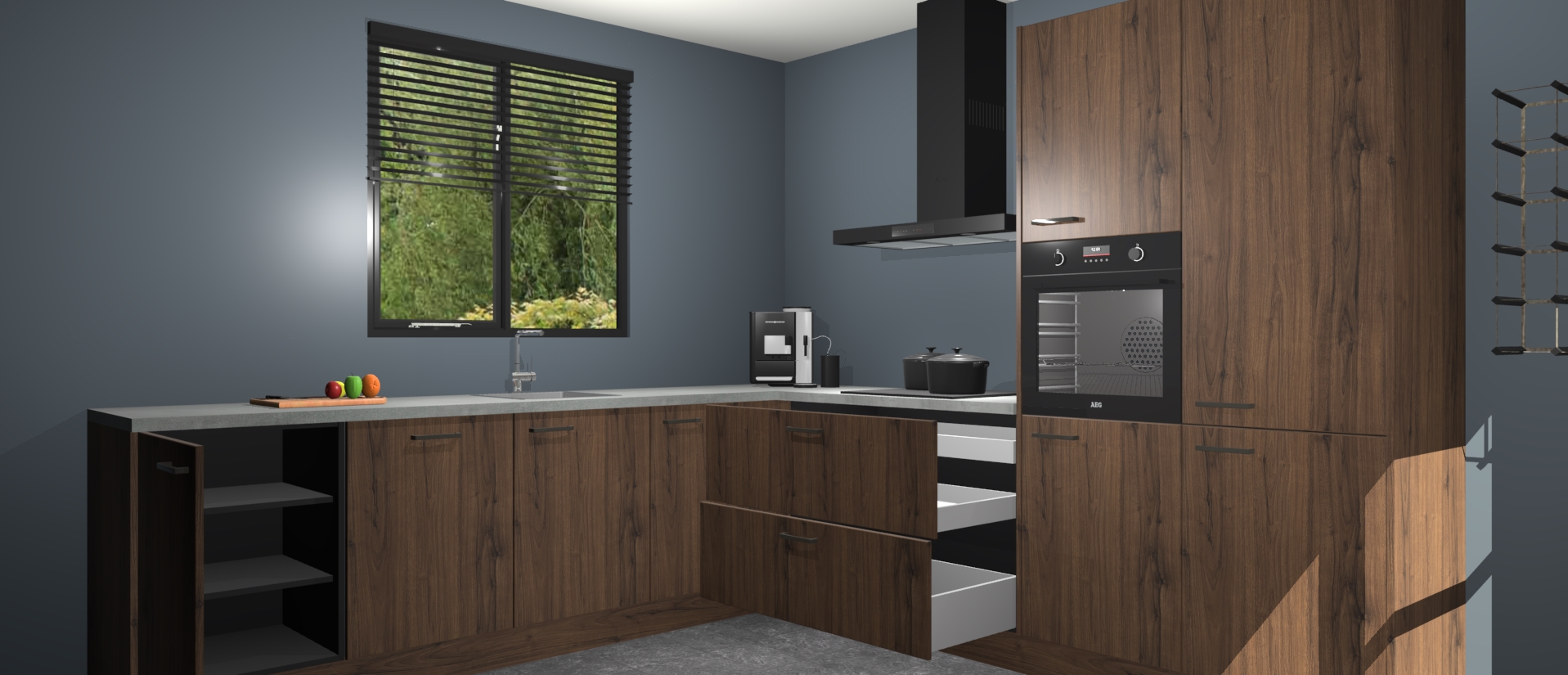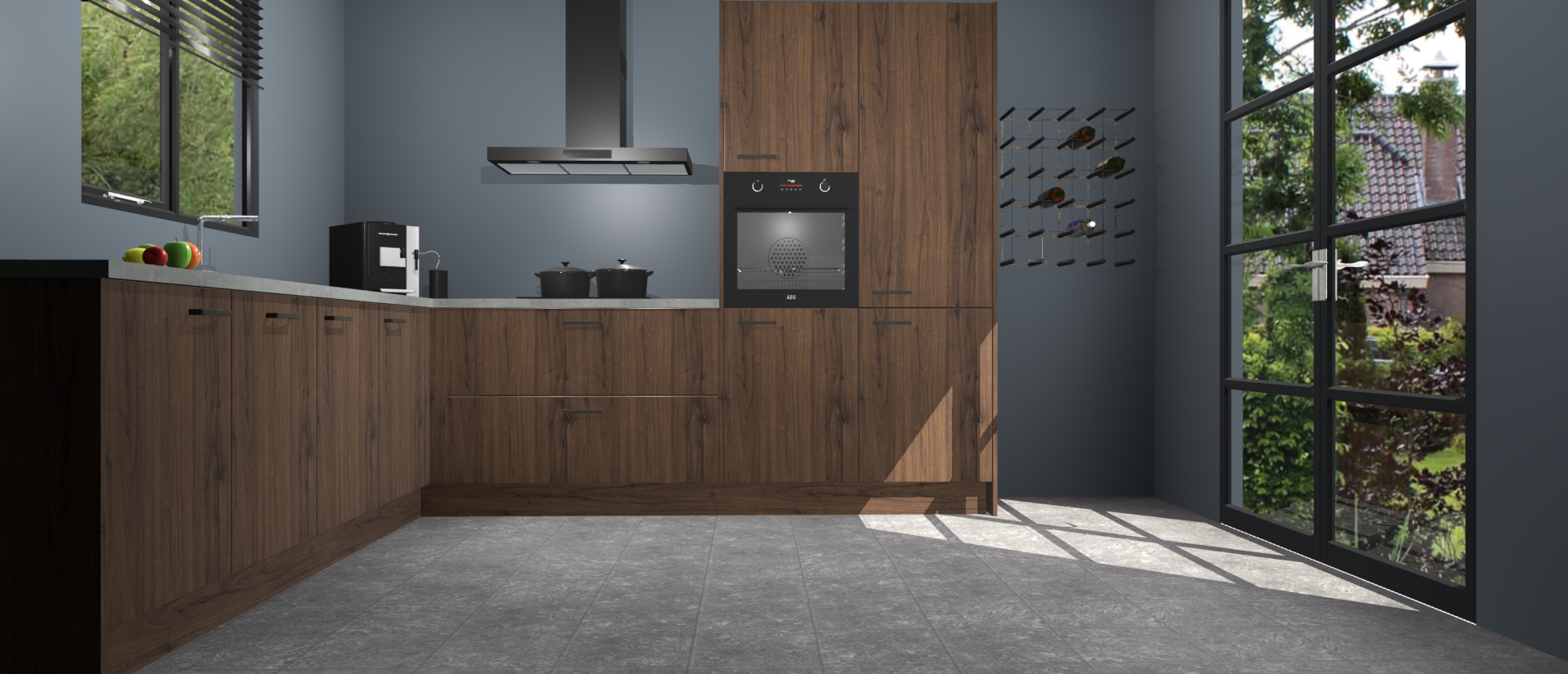 De Noten keuken Porto heeft 5 ingebouwde apparaten - een oven, inductiekookplaat, afzuigkap, vaatwasser en koelkast - waarmee u in een handomdraai heerlijke gerechten bereidt. Soft-close deuren zorgen voor nog meer functionaliteit en gemak. En dit alles voor een onverslaanbaar vaste prijs. En als u nu bestelt, duurt de levering maar 7 weken! Wat nog ongelooflijker is, is dat onze kasten voor gemonteerd worden geleverd.