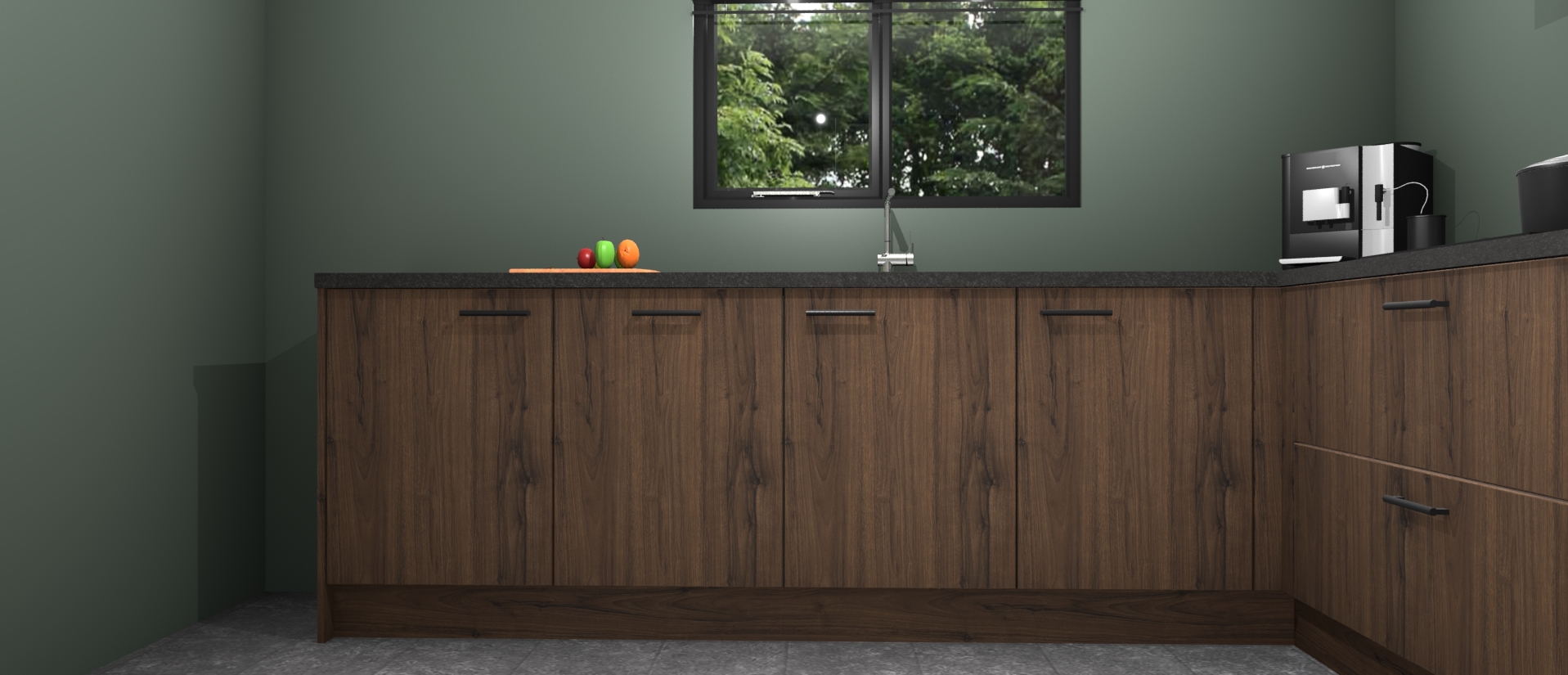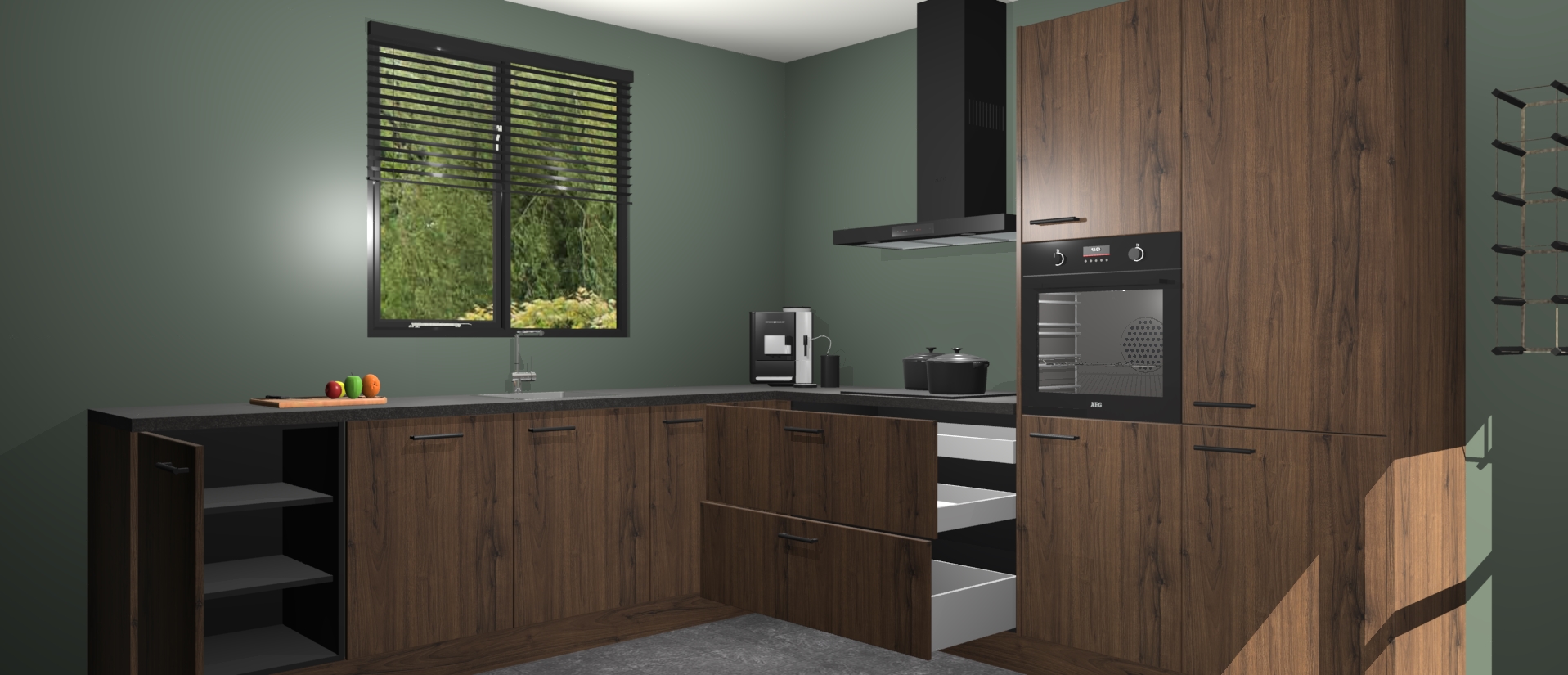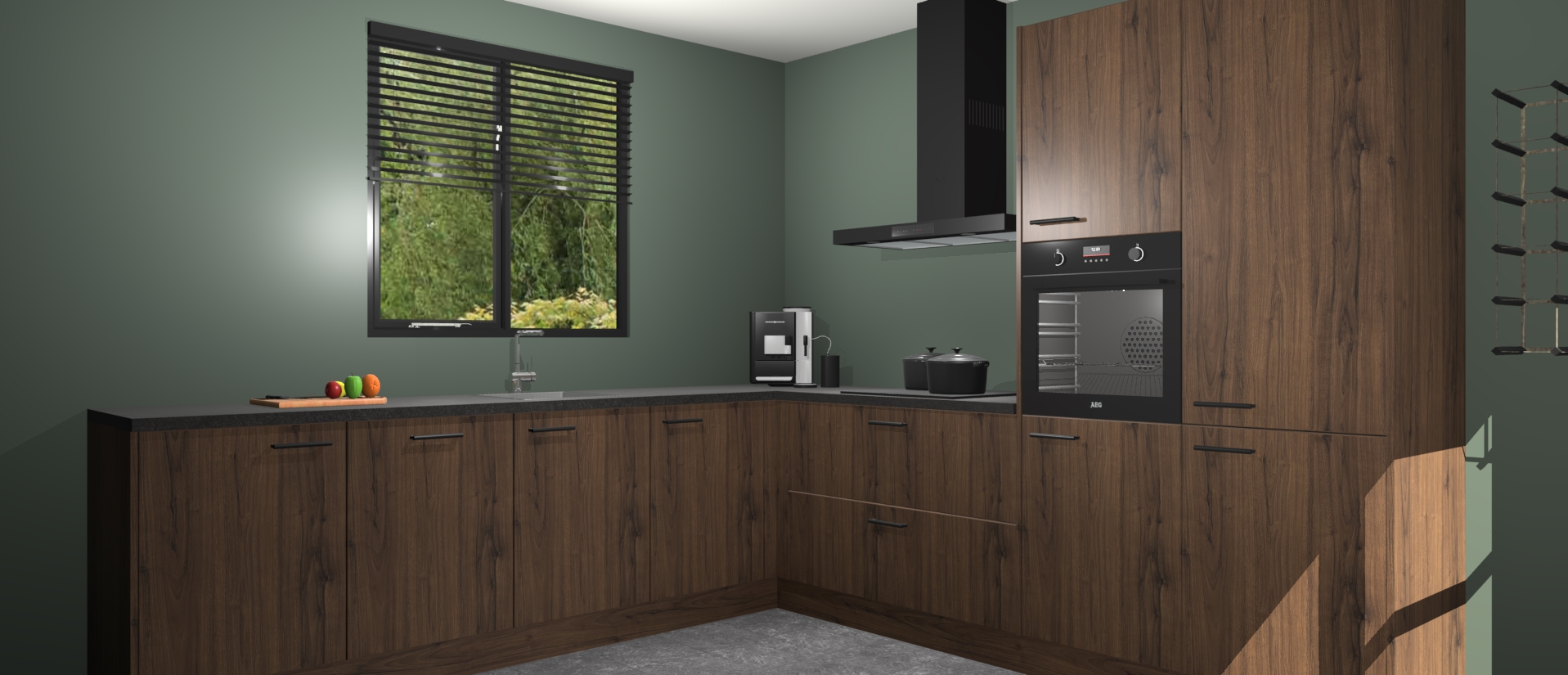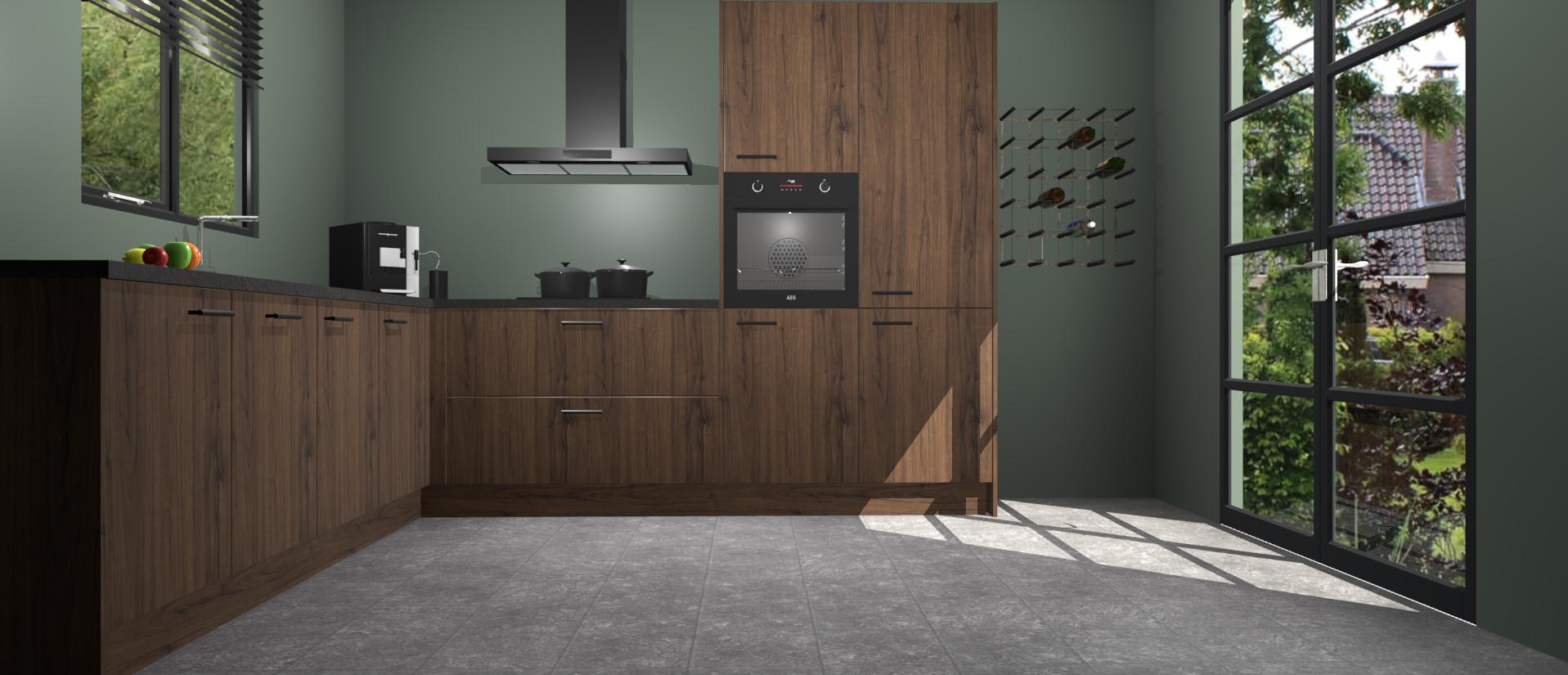 De Noten keuken Porto heeft 5 ingebouwde apparaten - een oven, inductiekookplaat, afzuigkap, vaatwasser en koelkast - waarmee u in een handomdraai heerlijke gerechten bereidt. Soft-close deuren zorgen voor nog meer functionaliteit en gemak. En dit alles voor een onverslaanbaar vaste prijs. En als u nu bestelt, duurt de levering maar 7 weken! Wat nog ongelooflijker is, is dat onze kasten voor gemonteerd worden geleverd.
