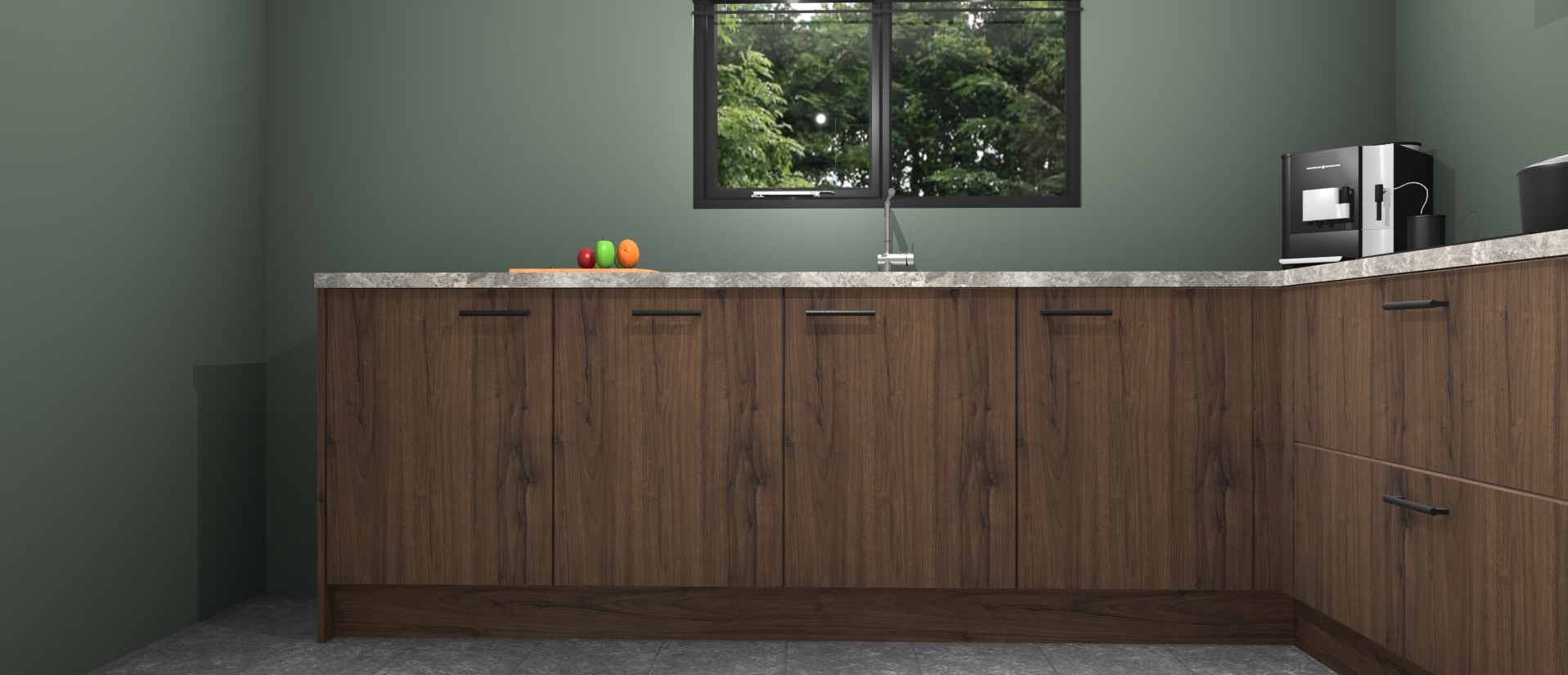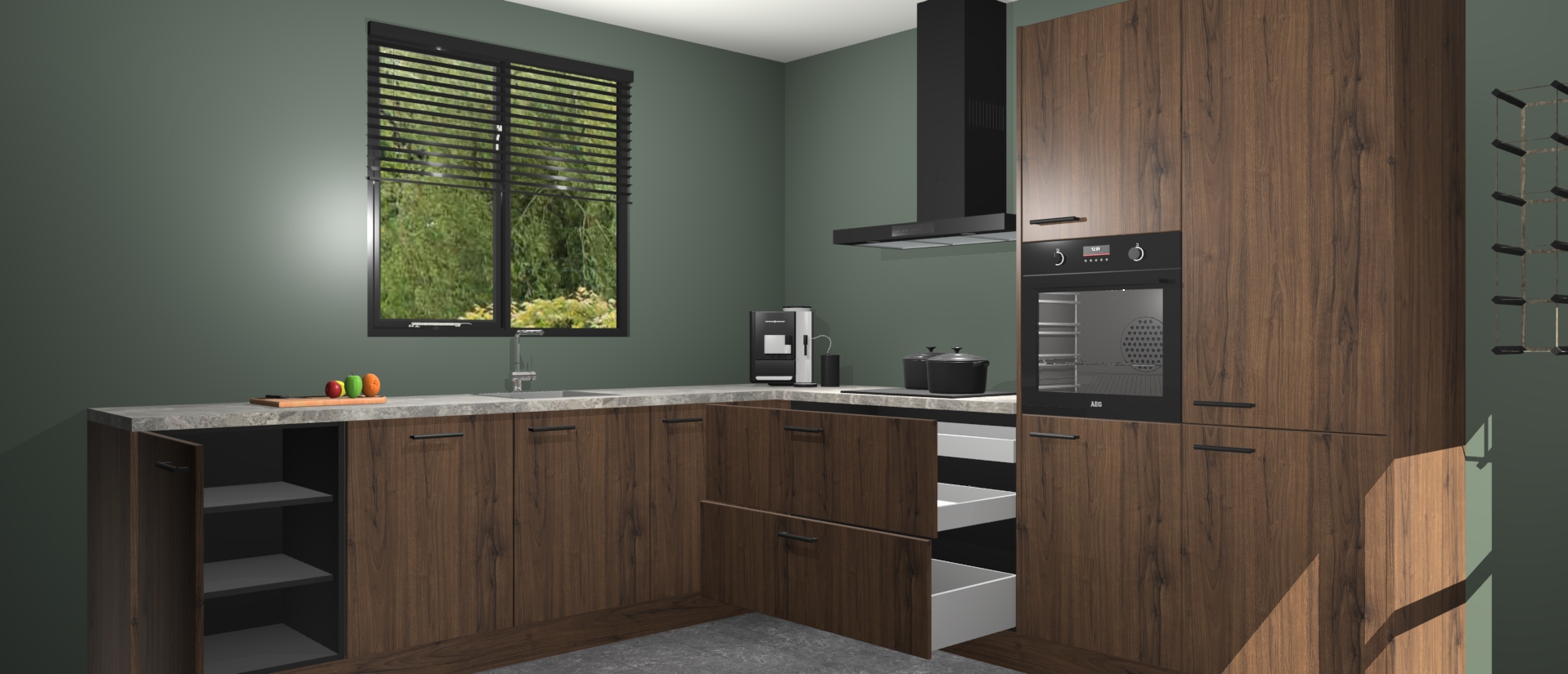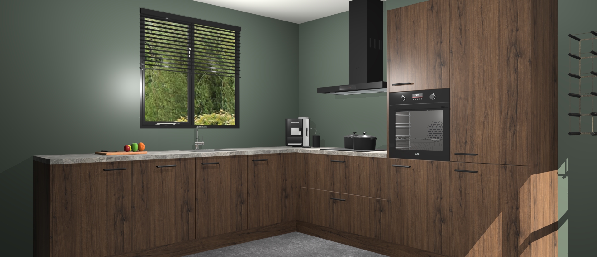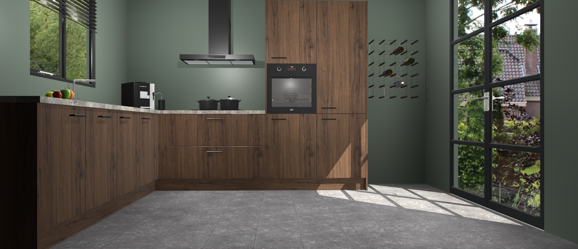 De Noten keuken Porto heeft 5 ingebouwde apparaten - een oven, inductiekookplaat, afzuigkap, vaatwasser en koelkast - waarmee u in een handomdraai heerlijke gerechten bereidt. Soft-close deuren zorgen voor nog meer functionaliteit en gemak. En dit alles voor een onverslaanbaar vaste prijs. En als u nu bestelt, duurt de levering maar 7 weken! Wat nog ongelooflijker is, is dat onze kasten voor gemonteerd worden geleverd.