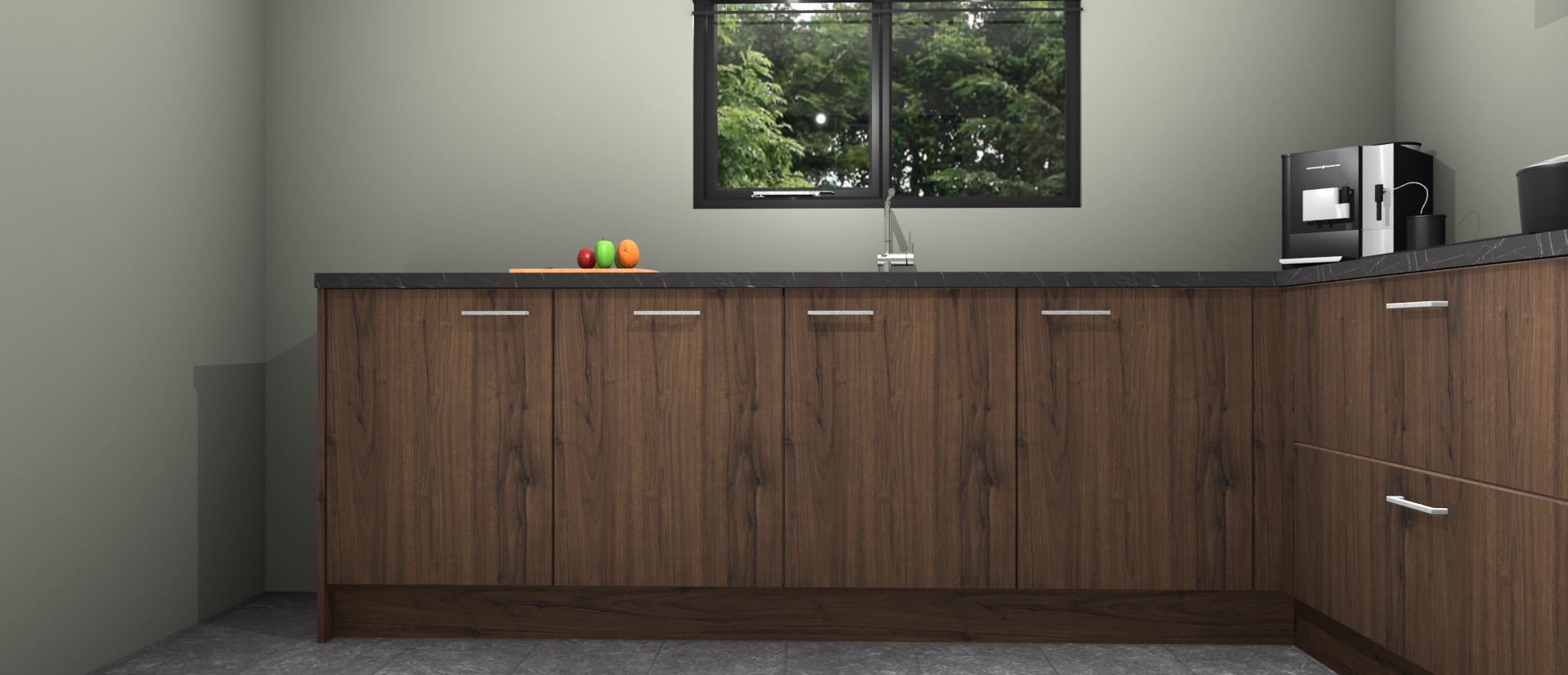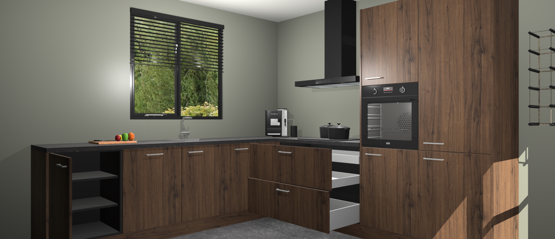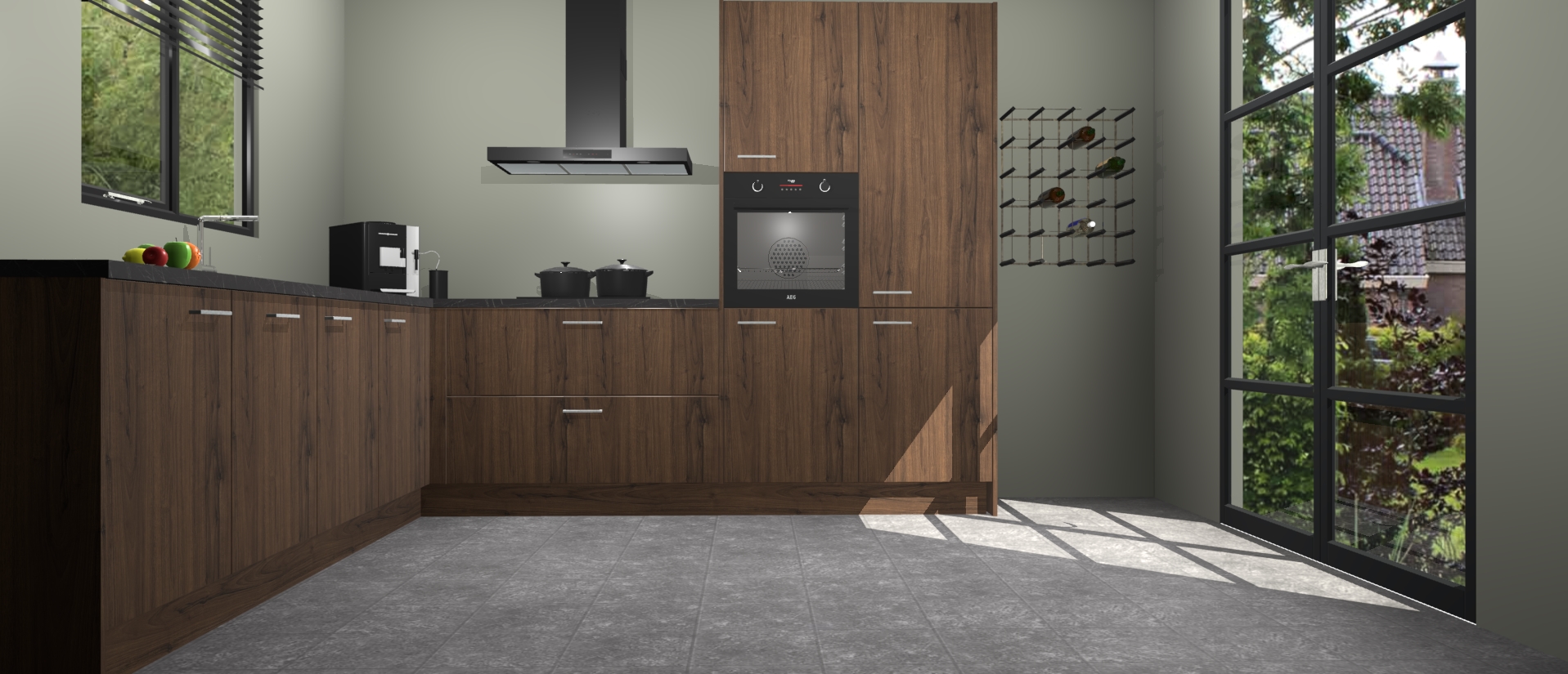 De Noten keuken Porto heeft 5 ingebouwde apparaten - een oven, inductiekookplaat, afzuigkap, vaatwasser en koelkast - waarmee u in een handomdraai heerlijke gerechten bereidt. Soft-close deuren zorgen voor nog meer functionaliteit en gemak. En dit alles voor een onverslaanbaar vaste prijs. En als u nu bestelt, duurt de levering maar 7 weken! Wat nog ongelooflijker is, is dat onze kasten voor gemonteerd worden geleverd.