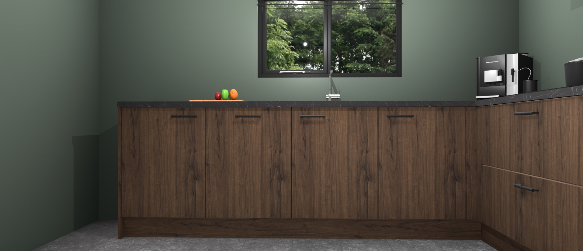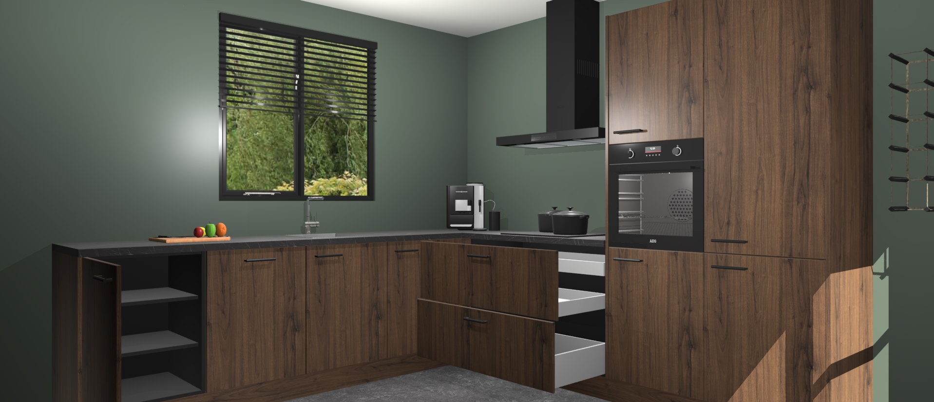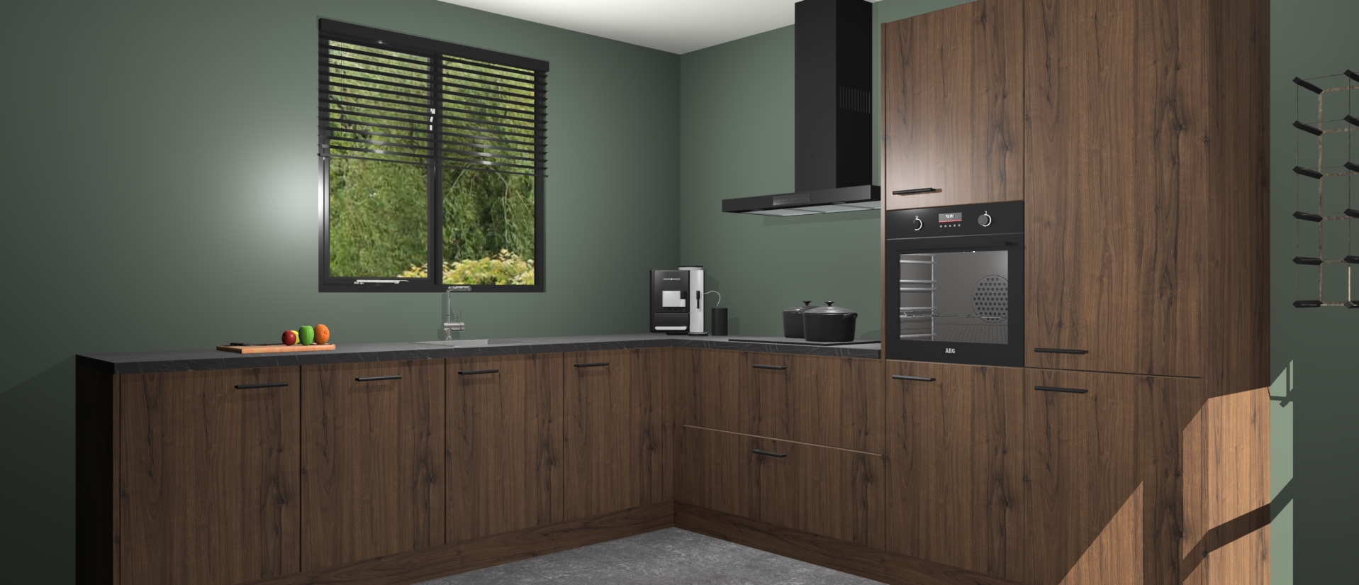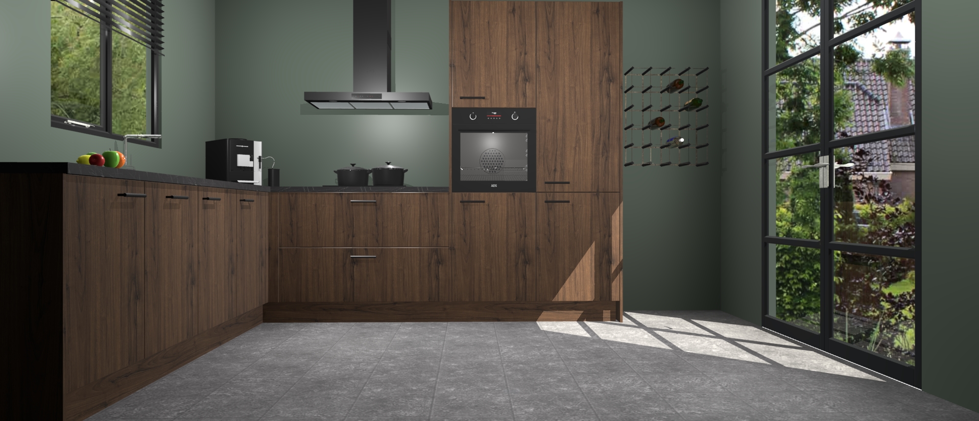 De Noten keuken Porto heeft 5 ingebouwde apparaten - een oven, inductiekookplaat, afzuigkap, vaatwasser en koelkast - waarmee u in een handomdraai heerlijke gerechten bereidt. Soft-close deuren zorgen voor nog meer functionaliteit en gemak. En dit alles voor een onverslaanbaar vaste prijs. En als u nu bestelt, duurt de levering maar 7 weken! Wat nog ongelooflijker is, is dat onze kasten voor gemonteerd worden geleverd.