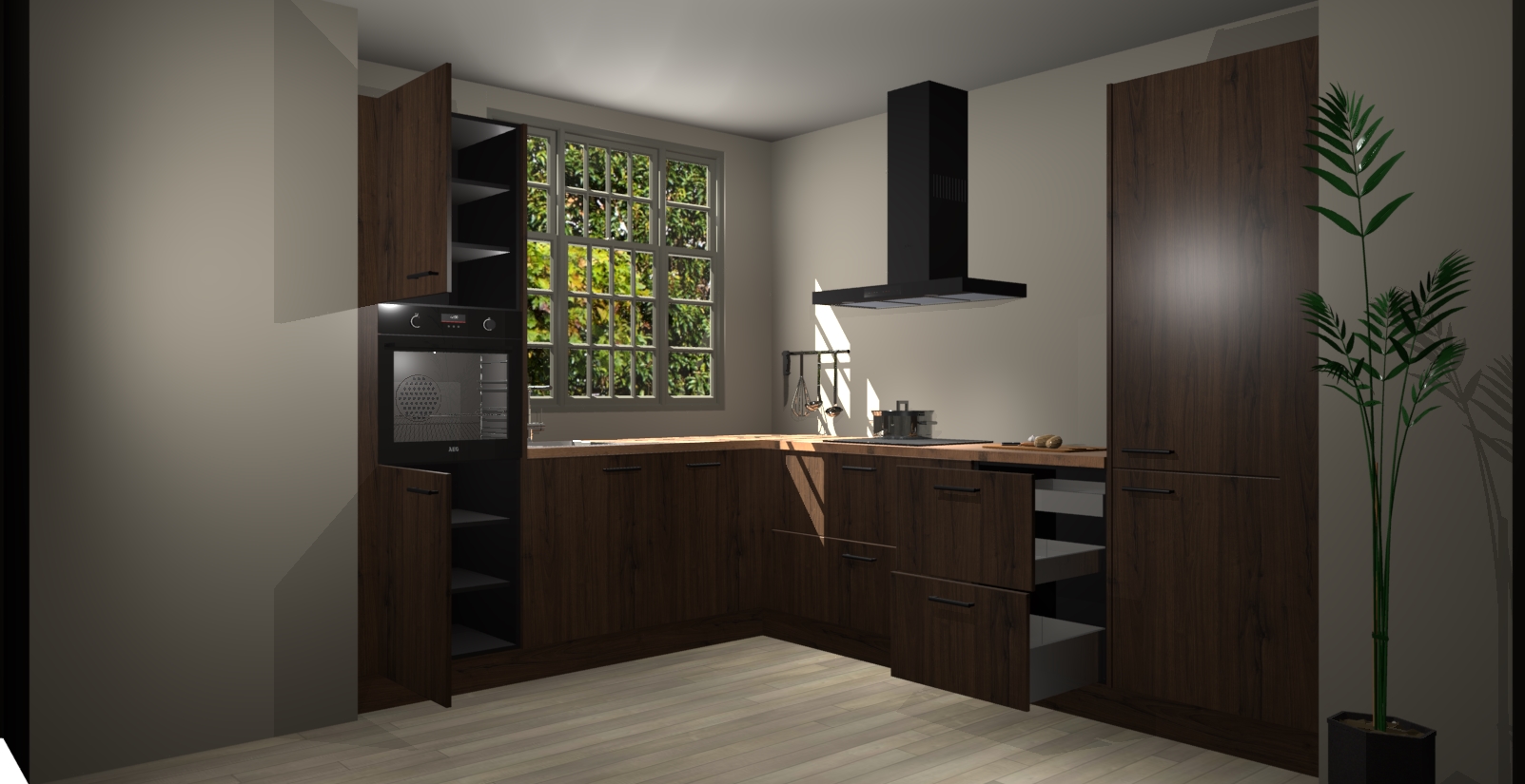 Met een modern, tijdloos design en ruime opslagruimte, zult u zich in no-time thuis voelen in uw nieuwe keuken. Uw leven wordt eenvoudiger met de soft-close deuren die voor het ultieme stille comfort zorgen - geen geluid dat u stoort terwijl u kookt. Ook is de keuken voorzien van 5 ingebouwde apparaten: een oven, inductie kookplaat, afzuigkap, vaatwasser en koelkast. Deze kunnen gemakkelijk na bestelling worden bijgewerkt naar AEG - waardoor uw luxe ervaring compleet is.