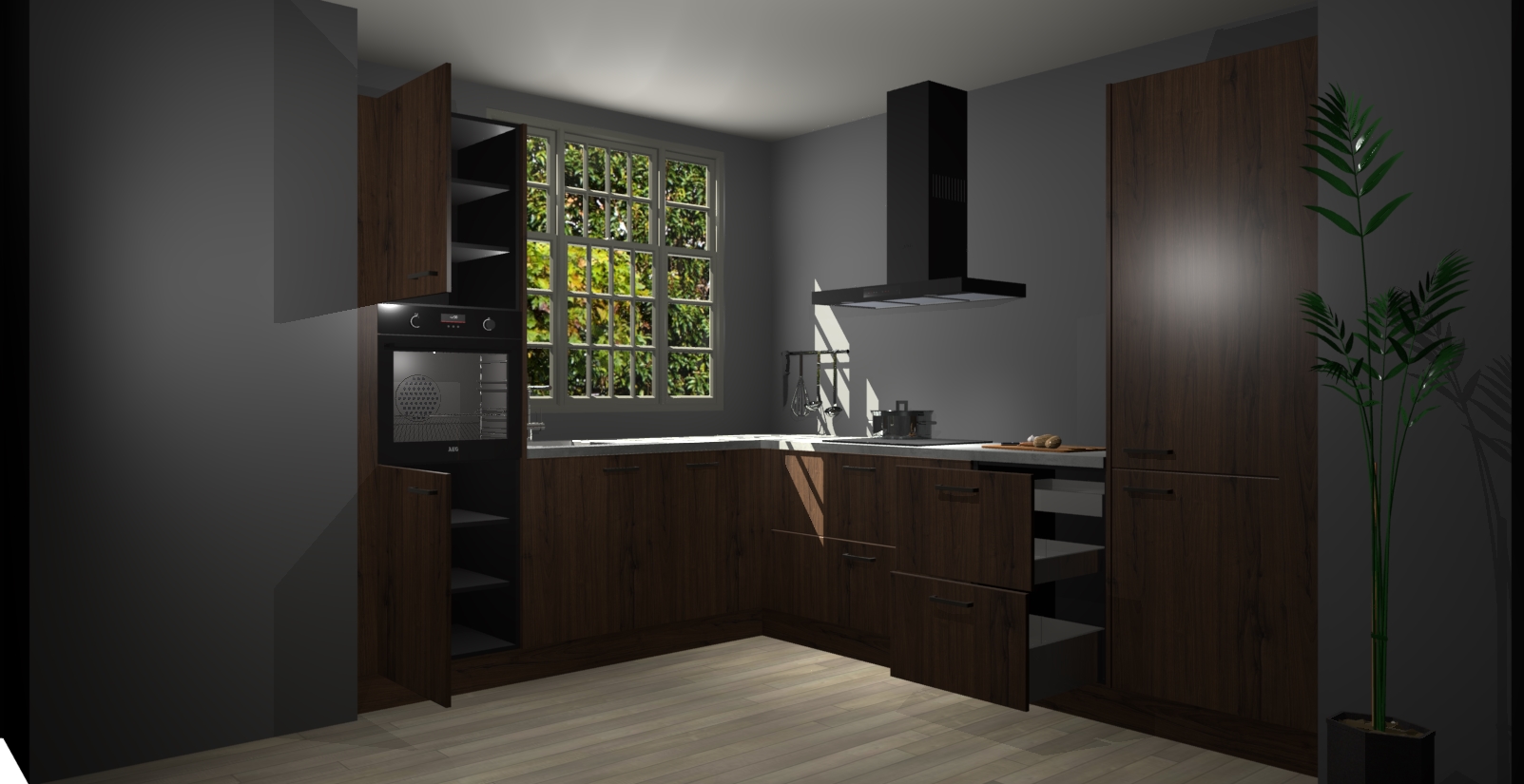 Met een modern, tijdloos design en ruime opslagruimte, zult u zich in no-time thuis voelen in uw nieuwe keuken. Uw leven wordt eenvoudiger met de soft-close deuren die voor het ultieme stille comfort zorgen - geen geluid dat u stoort terwijl u kookt. Ook is de keuken voorzien van 5 ingebouwde apparaten: een oven, inductie kookplaat, afzuigkap, vaatwasser en koelkast. Deze kunnen gemakkelijk na bestelling worden bijgewerkt naar AEG - waardoor uw luxe ervaring compleet is.