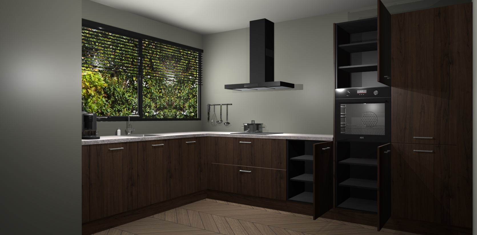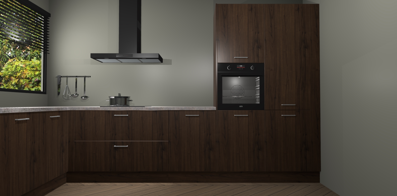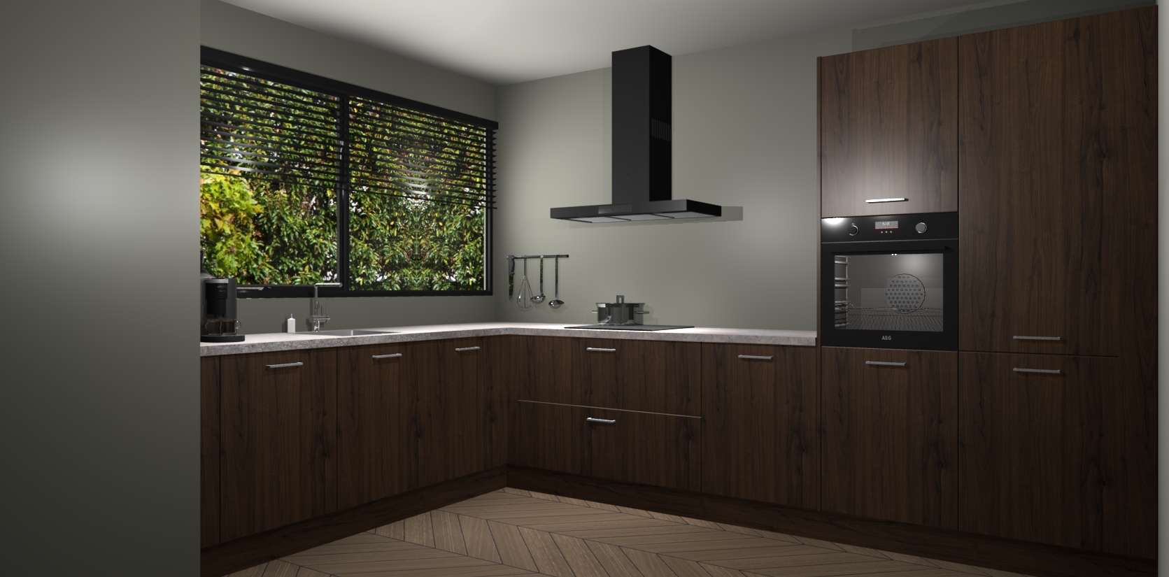 Met een modern, tijdloos design en ruime opslagruimte, zult u zich in no-time thuis voelen in uw nieuwe keuken. Uw leven wordt eenvoudiger met de soft-close deuren die voor het ultieme stille comfort zorgen - geen geluid dat u stoort terwijl u kookt. Ook is de keuken voorzien van 5 ingebouwde apparaten: een oven, inductie kookplaat, afzuigkap, vaatwasser en koelkast. Deze kunnen gemakkelijk na bestelling worden bijgewerkt naar AEG - waardoor uw luxe ervaring compleet is.