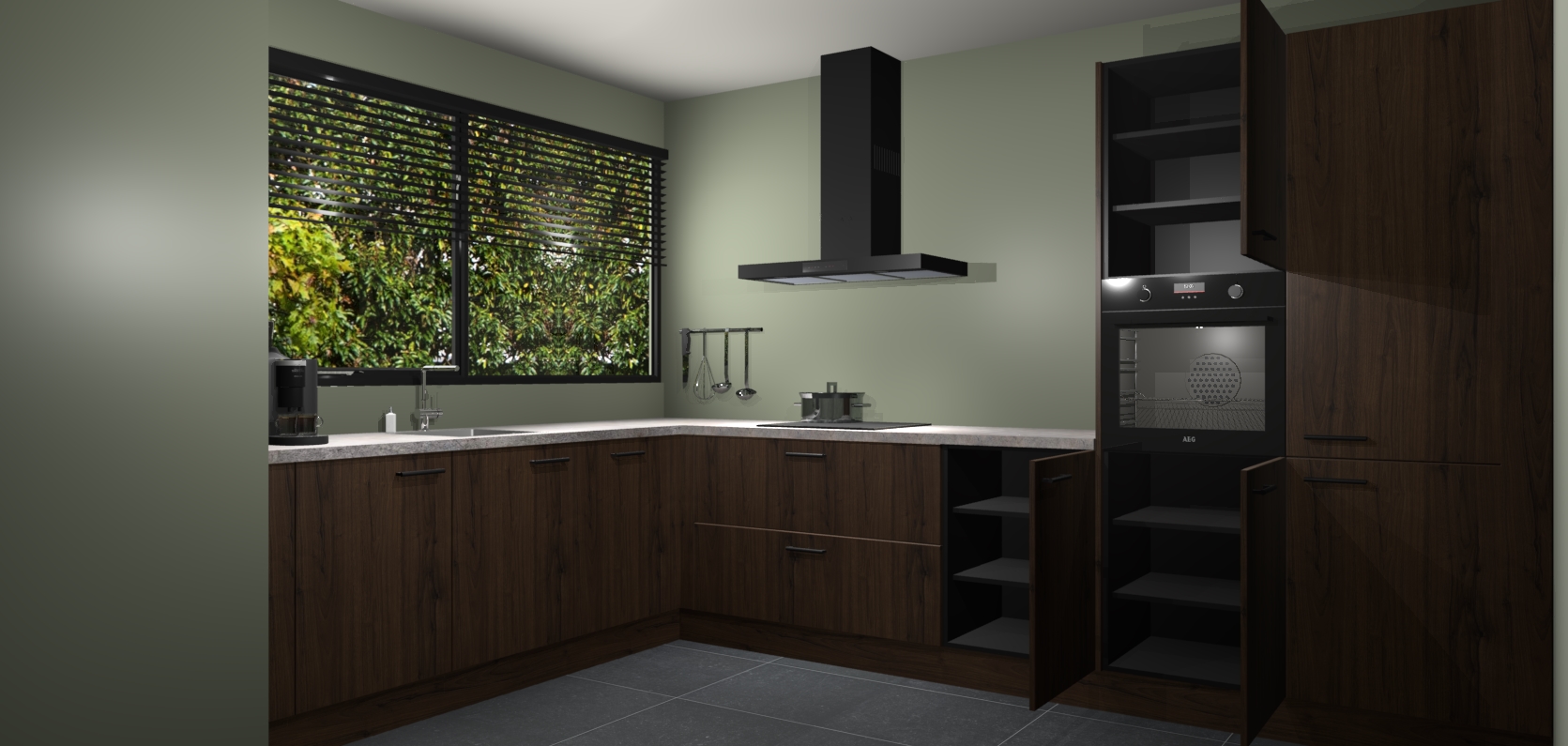 Wij presenteren de revolutie in keukens: de Noten keuken Rhodos. Met modern design, een tijdloos uiterlijk en kasten die al voor gemonteerd worden geleverd, laat deze stijlvolle keuken uw kookervaring op een hele nieuwe manier transformeren.