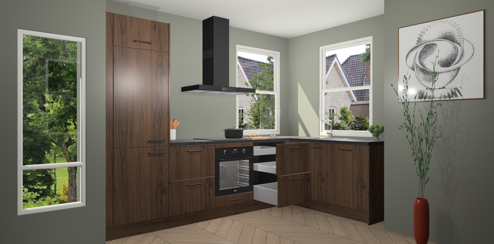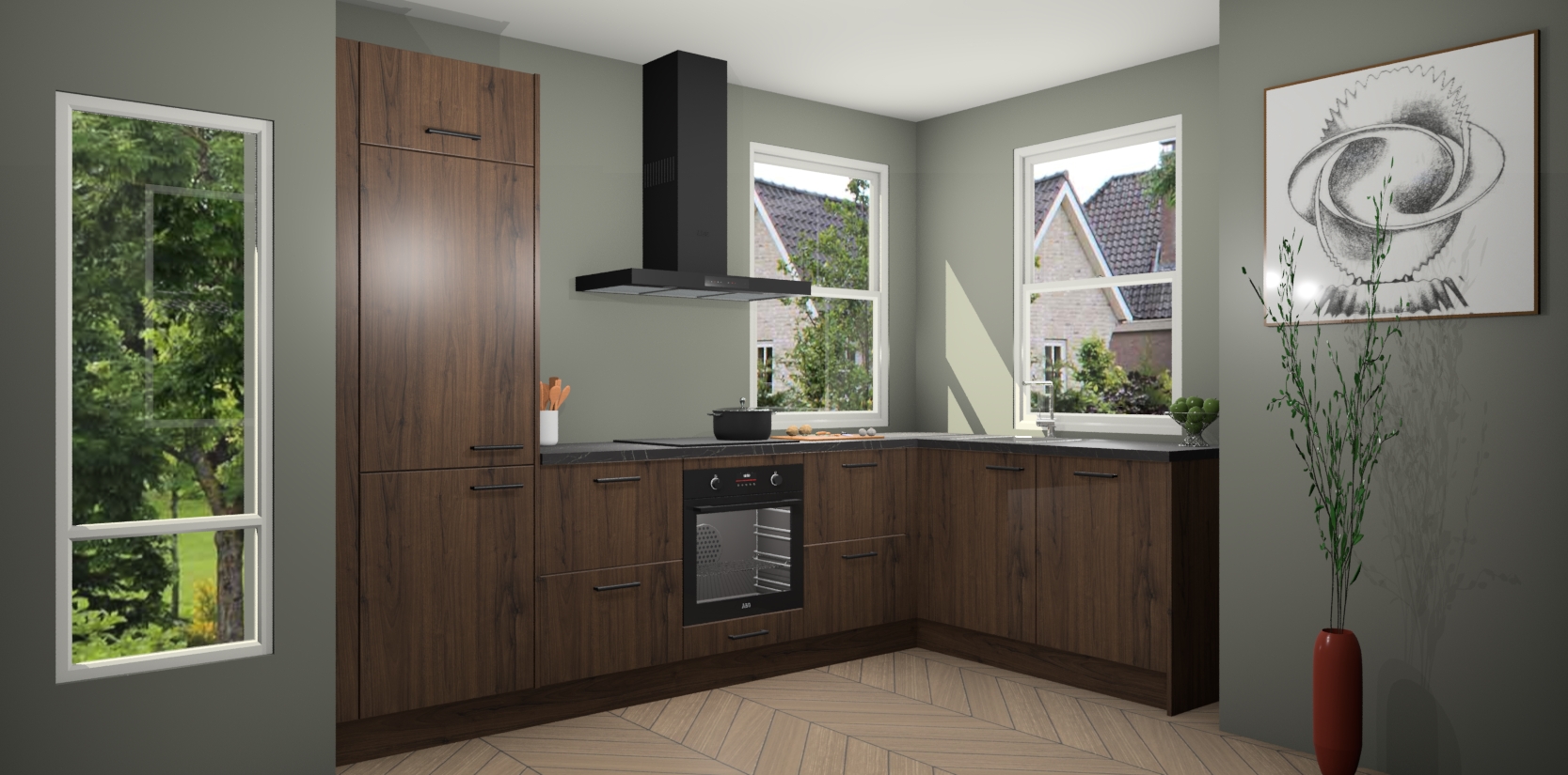 Welkom bij de Noten keuken Salzburg! Met een chique combinatie van een prachtig houten werkblad, klassiek design en altijd concurrerende prijzen is de Noten keuken Salzburg de keuken van uw dromen! Deze keuken is perfect voor alle huisformaten en decorstijlen en straalt stijl en verfijning uit. Van het tijdloze design tot de functionele functies, er is geen betere manier om de look van uw woon- of kookruimte te verbeteren.