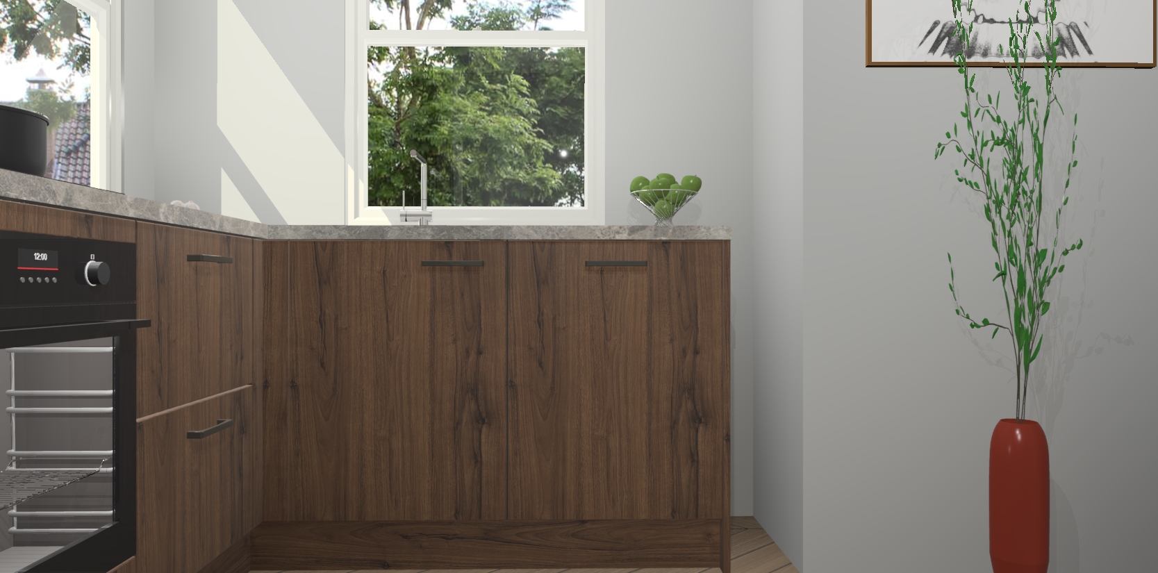 Welkom bij de Noten keuken Salzburg! Met een chique combinatie van een prachtig houten werkblad, klassiek design en altijd concurrerende prijzen is de Noten keuken Salzburg de keuken van uw dromen! Deze keuken is perfect voor alle huisformaten en decorstijlen en straalt stijl en verfijning uit. Van het tijdloze design tot de functionele functies, er is geen betere manier om de look van uw woon- of kookruimte te verbeteren.