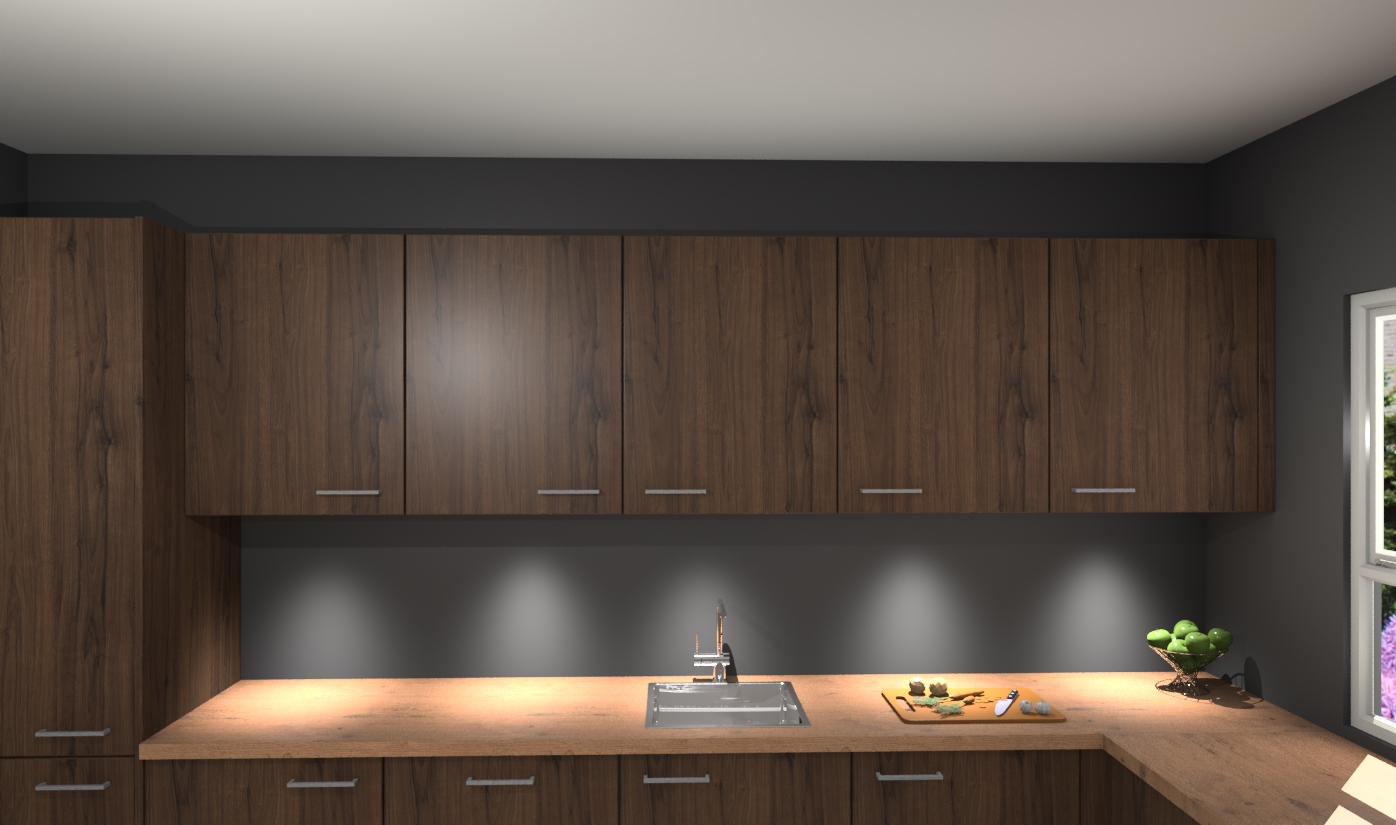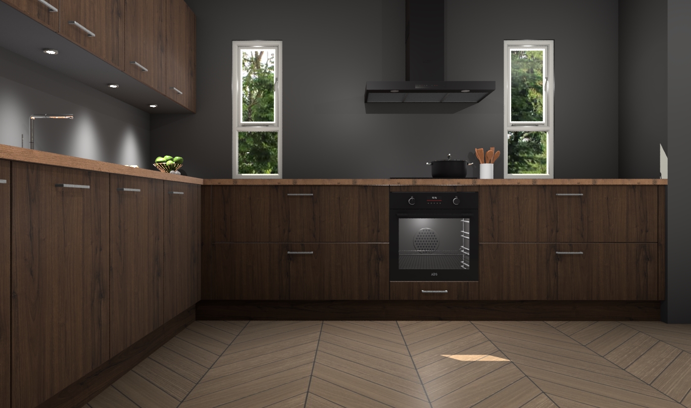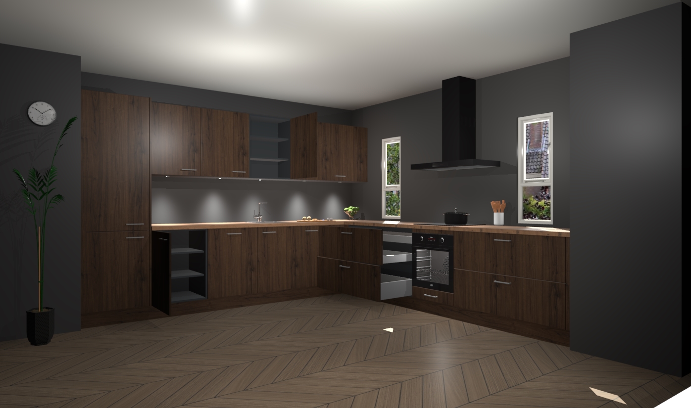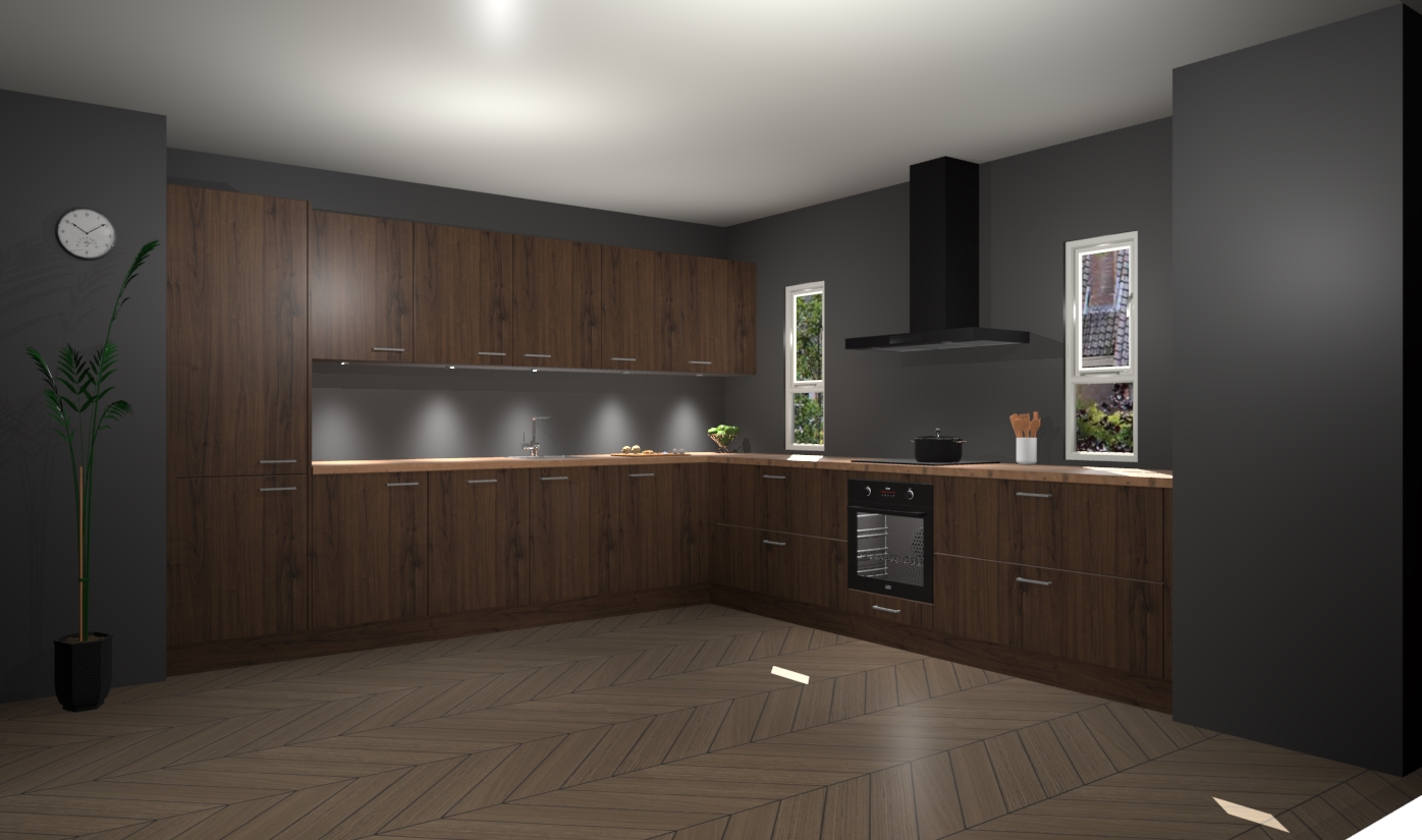De noten keuken is een ideale hoekkeuken en heeft alle functies en apparatuur die u maar nodig kunt hebben. Bij de bestelling krijgt u een oven, inductiekookplaat, afzuigkap, vaatwasser en koelkast - deze kunnen desgewenst eenvoudig worden uitgebreid naar AEG na bestellen. Elke kast wordt ook voor gemonteerd geleverd met soft close deuren die jarenlang gebruik beloven. Stelt u zich voor dat u geen gedoe heeft met vervelende montage - vanaf het moment dat u uw bestelling plaats, duurt het slechts 7 weken voor het bij u thuis geleverd wordt.