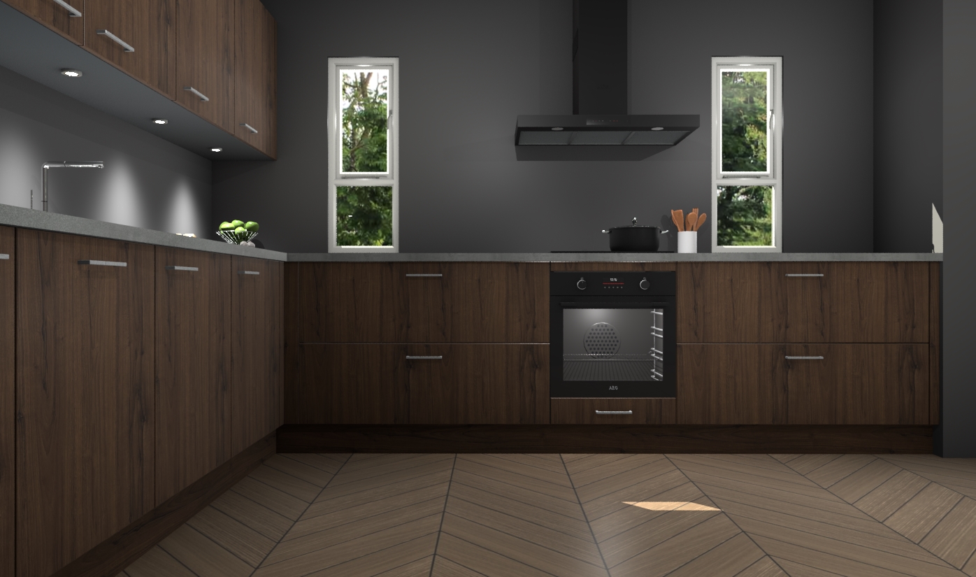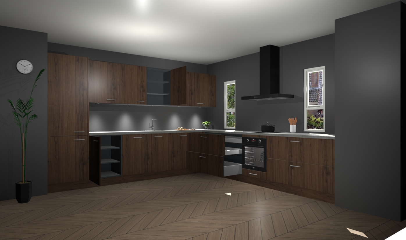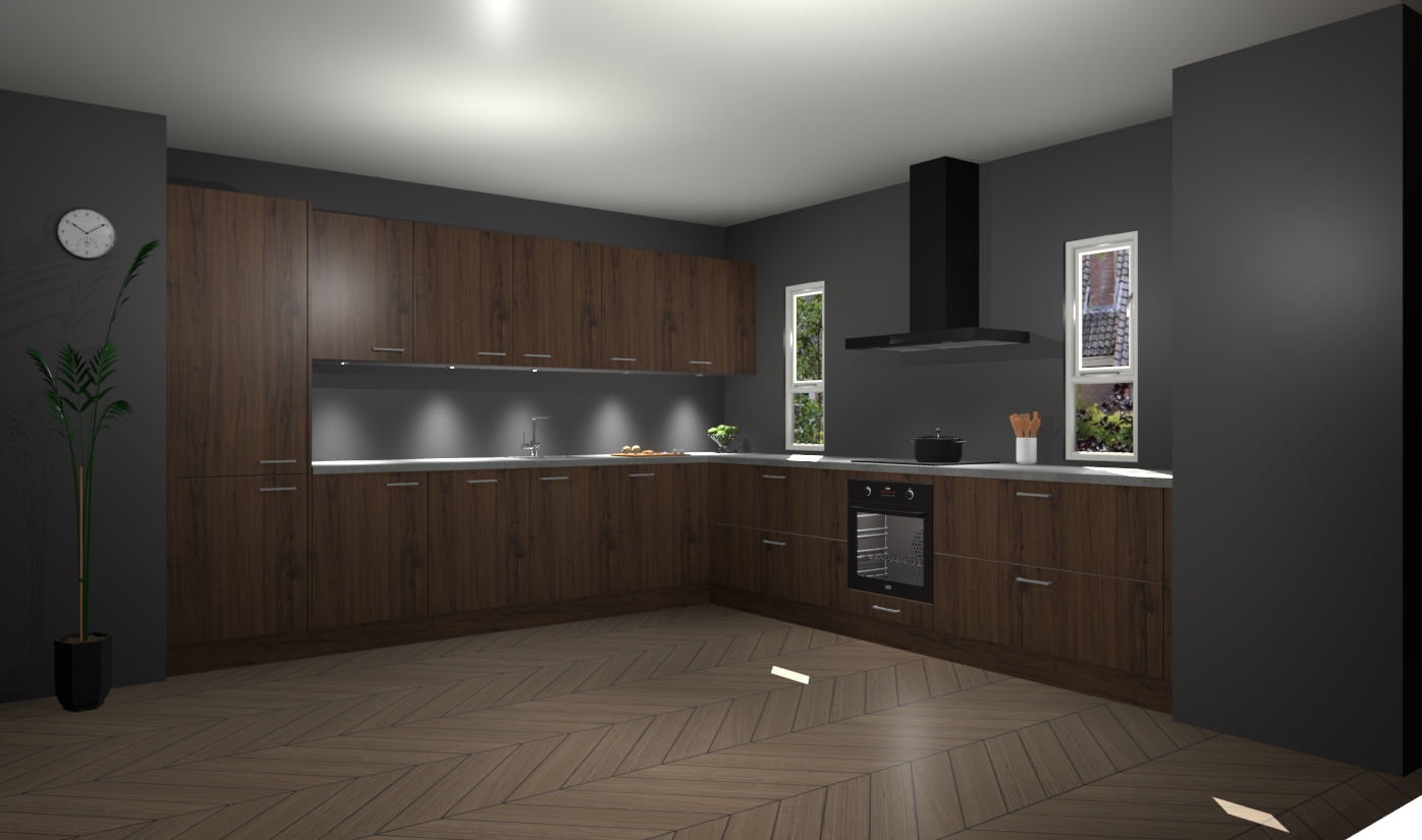 De noten keuken is een ideale hoekkeuken en heeft alle functies en apparatuur die u maar nodig kunt hebben. Bij de bestelling krijgt u een oven, inductiekookplaat, afzuigkap, vaatwasser en koelkast - deze kunnen desgewenst eenvoudig worden uitgebreid naar AEG na bestellen. Elke kast wordt ook voor gemonteerd geleverd met soft close deuren die jarenlang gebruik beloven. Stelt u zich voor dat u geen gedoe heeft met vervelende montage - vanaf het moment dat u uw bestelling plaats, duurt het slechts 7 weken voor het bij u thuis geleverd wordt.