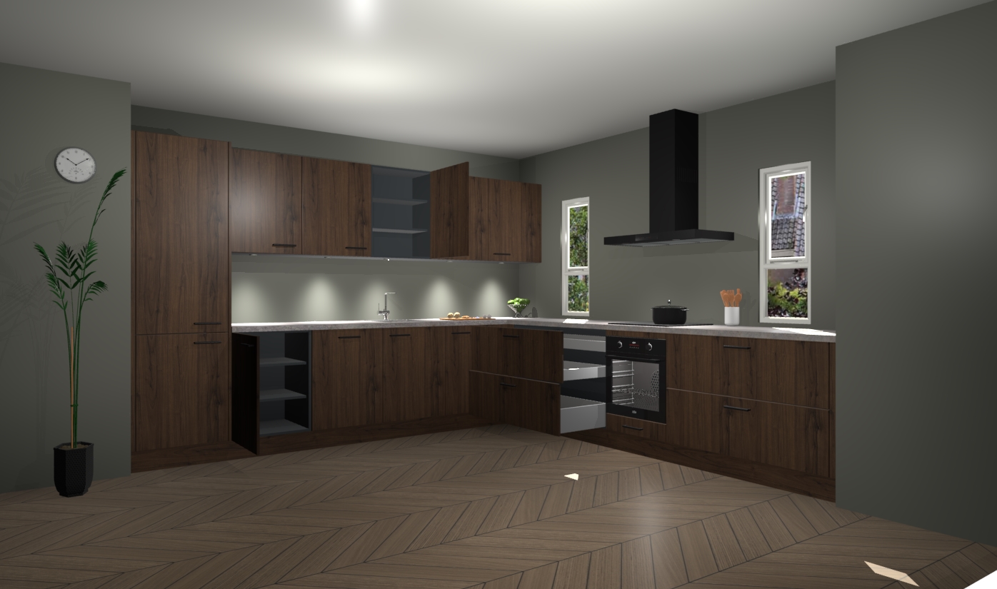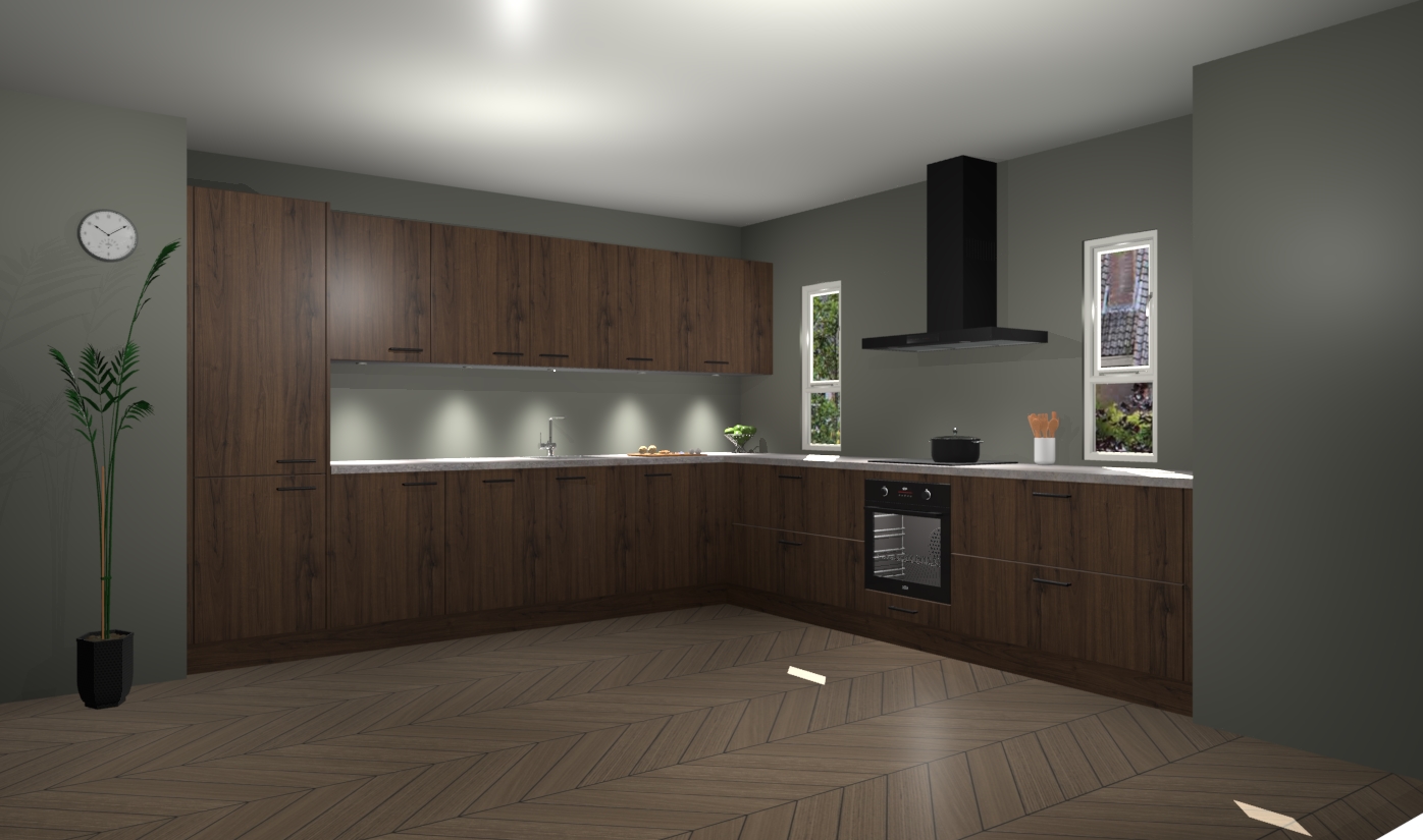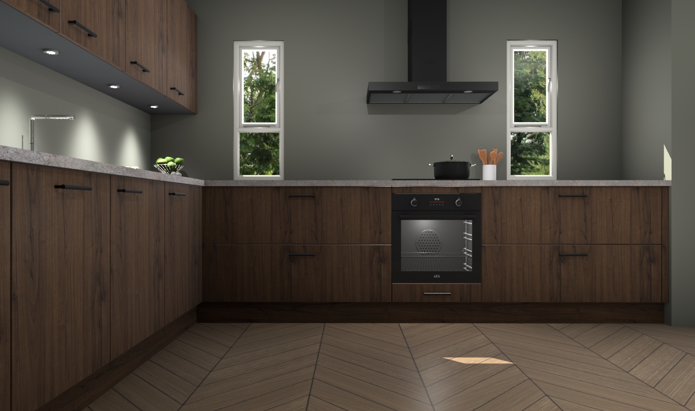 De noten keuken is een ideale hoekkeuken en heeft alle functies en apparatuur die u maar nodig kunt hebben. Bij de bestelling krijgt u een oven, inductiekookplaat, afzuigkap, vaatwasser en koelkast - deze kunnen desgewenst eenvoudig worden uitgebreid naar AEG na bestellen. Elke kast wordt ook voor gemonteerd geleverd met soft close deuren die jarenlang gebruik beloven. Stelt u zich voor dat u geen gedoe heeft met vervelende montage - vanaf het moment dat u uw bestelling plaats, duurt het slechts 7 weken voor het bij u thuis geleverd wordt.