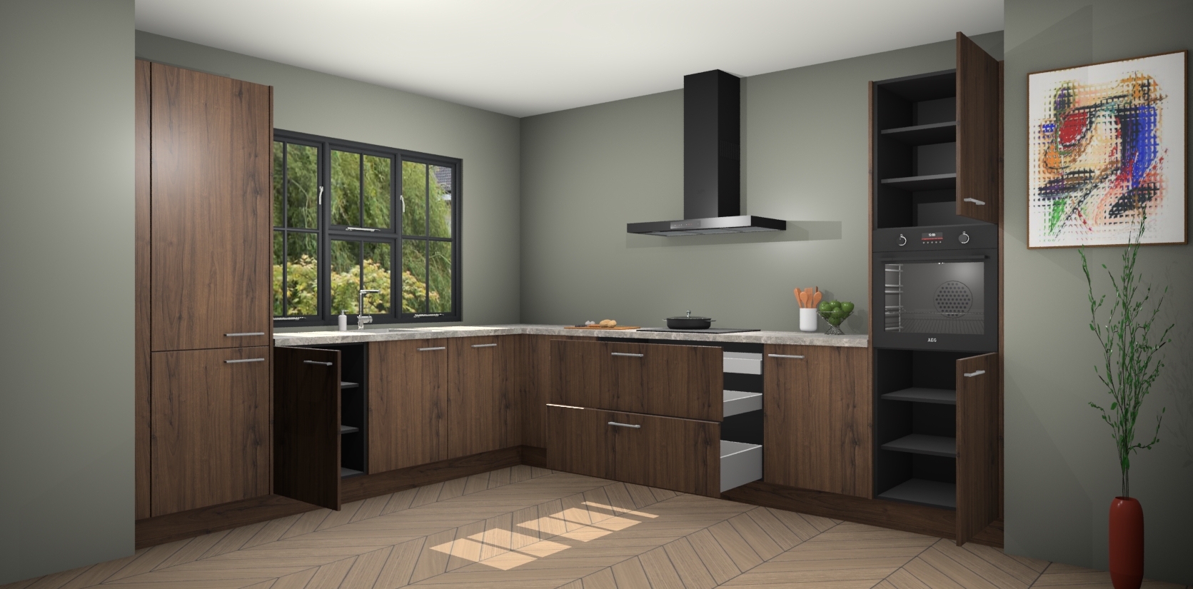 In deze box zijn alle kleuren verzameld van de deuren en werkbladen. Vraag de gratis kleurenbox aan en kijk thuis rustig verder!