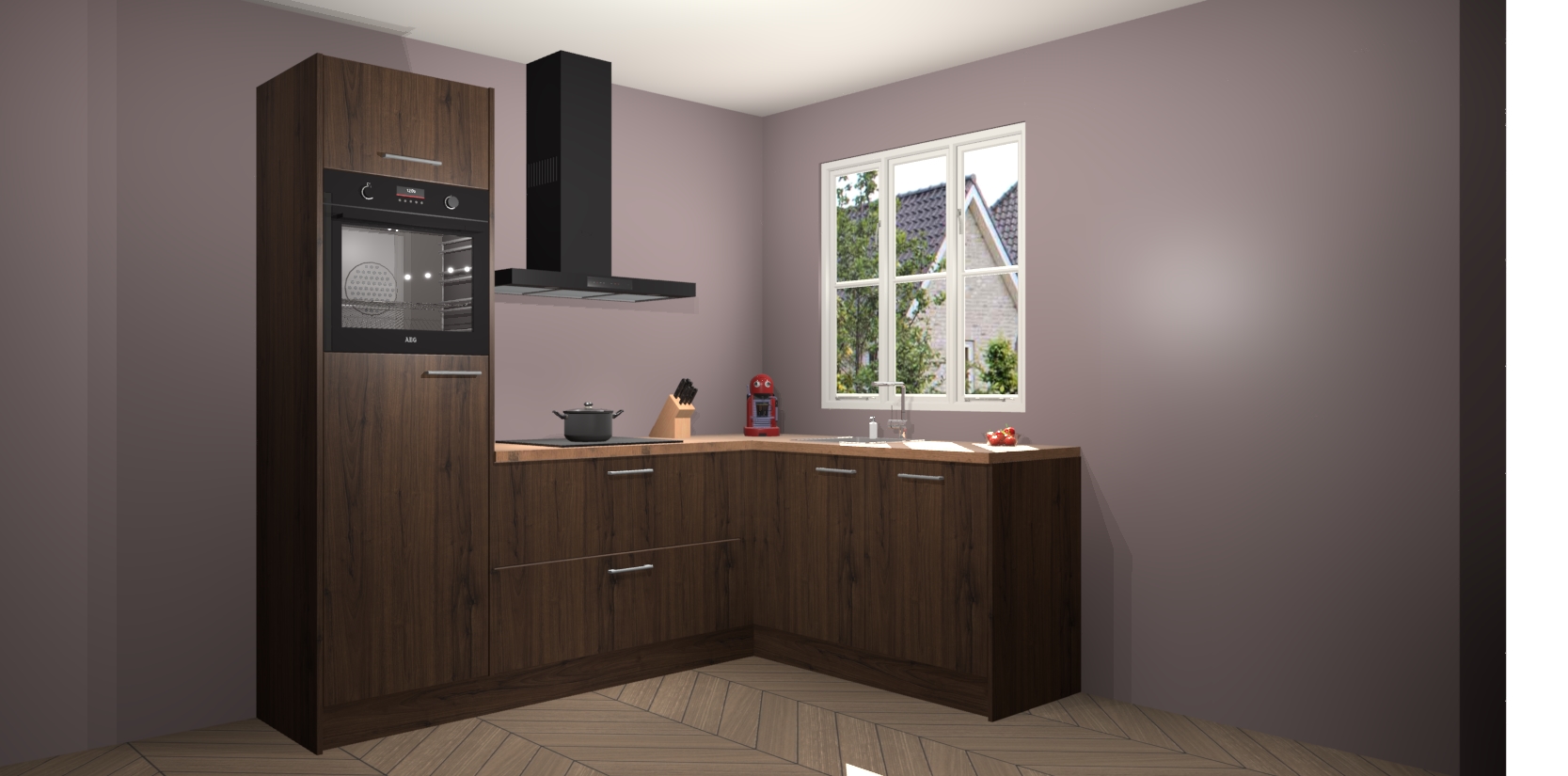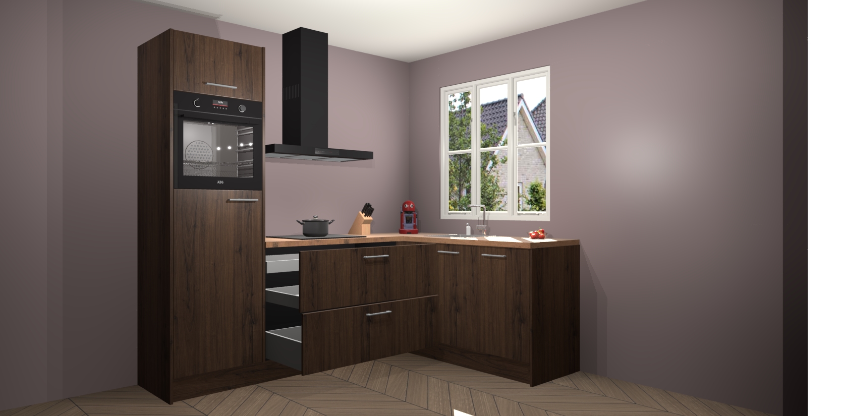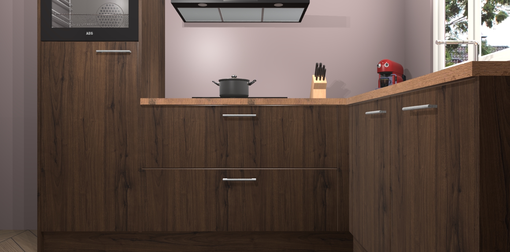 Dit model biedt u voldoende opbergruimte en vijf ingebouwde apparaten: een oven, inductiekookplaat, afzuigkap, vaatwasser en koelkast. Deze apparaten kunnen gemakkelijk worden geüpgrade naar AEG nadat u besteld heeft. De verschillende laden en kastjes bevatten softclose-deuren waardoor ze gezellig dichtvallen met een geruststellend helemaal geruisloos geluid. En dat is nog niet alles! We garanderen ook dat de prijs altijd laag blijft - dus haal nu uw Noten keuken Victoria terwijl het kan.