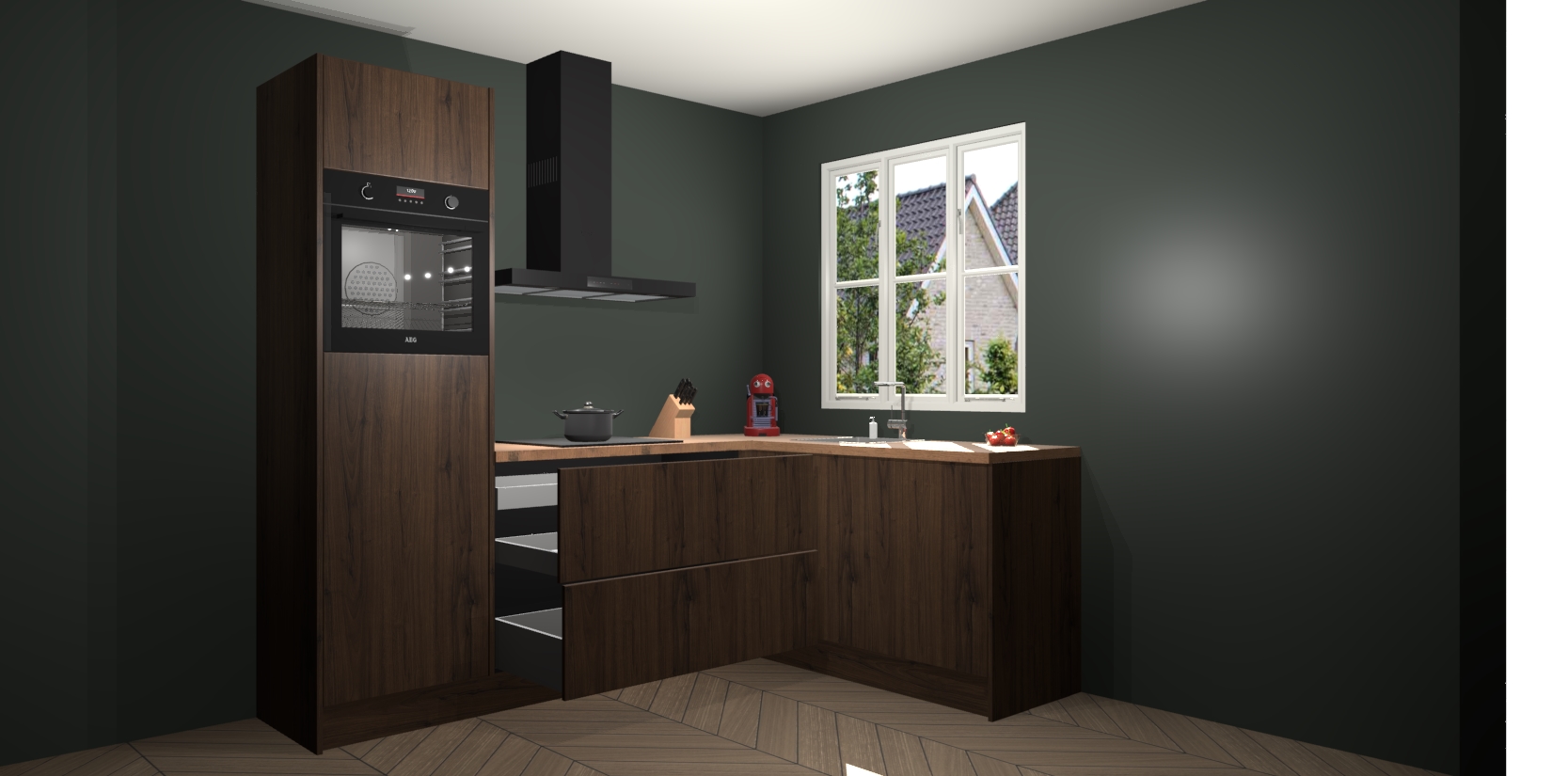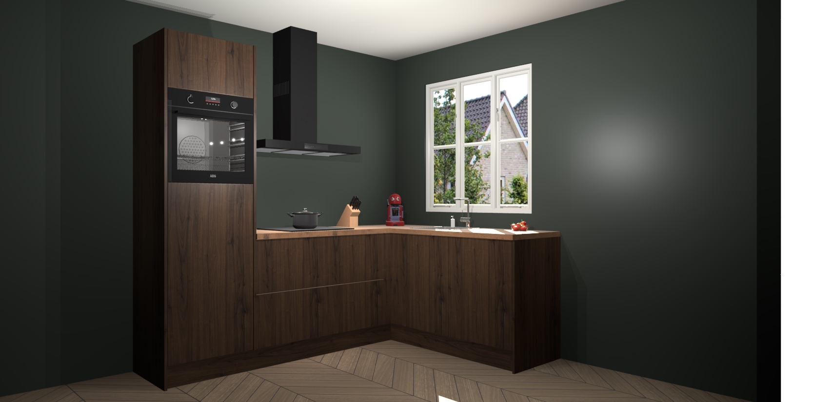 Dit model biedt u voldoende opbergruimte en vijf ingebouwde apparaten: een oven, inductiekookplaat, afzuigkap, vaatwasser en koelkast. Deze apparaten kunnen gemakkelijk worden geüpgrade naar AEG nadat u besteld heeft. De verschillende laden en kastjes bevatten softclose-deuren waardoor ze gezellig dichtvallen met een geruststellend helemaal geruisloos geluid. En dat is nog niet alles! We garanderen ook dat de prijs altijd laag blijft - dus haal nu uw Noten keuken Victoria terwijl het kan.
