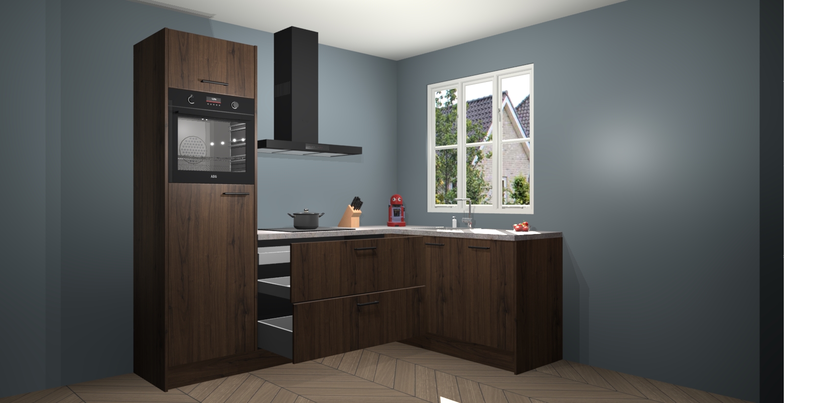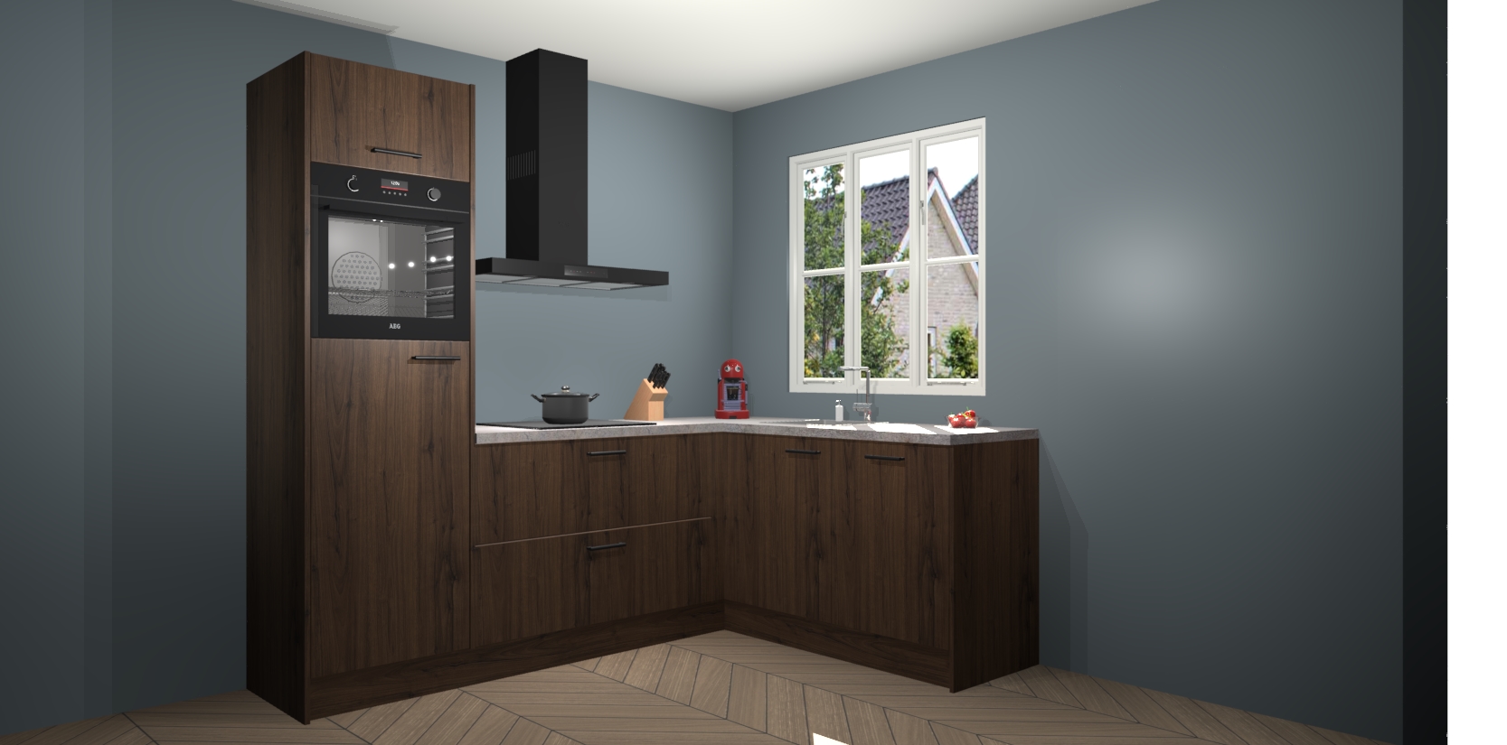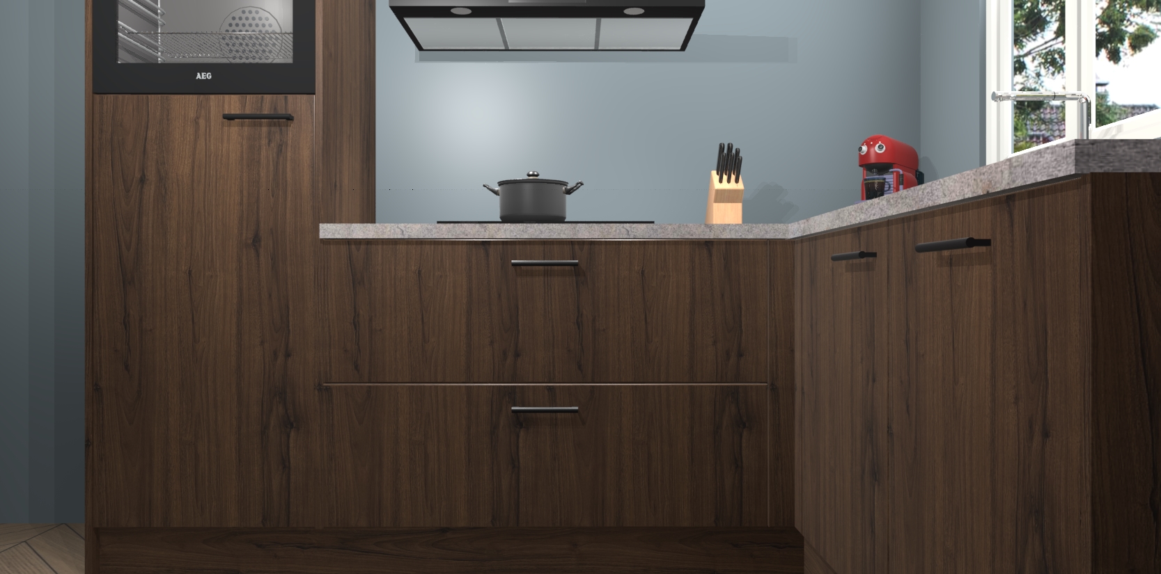 Dit model biedt u voldoende opbergruimte en vijf ingebouwde apparaten: een oven, inductiekookplaat, afzuigkap, vaatwasser en koelkast. Deze apparaten kunnen gemakkelijk worden geüpgrade naar AEG nadat u besteld heeft. De verschillende laden en kastjes bevatten softclose-deuren waardoor ze gezellig dichtvallen met een geruststellend helemaal geruisloos geluid. En dat is nog niet alles! We garanderen ook dat de prijs altijd laag blijft - dus haal nu uw Noten keuken Victoria terwijl het kan.