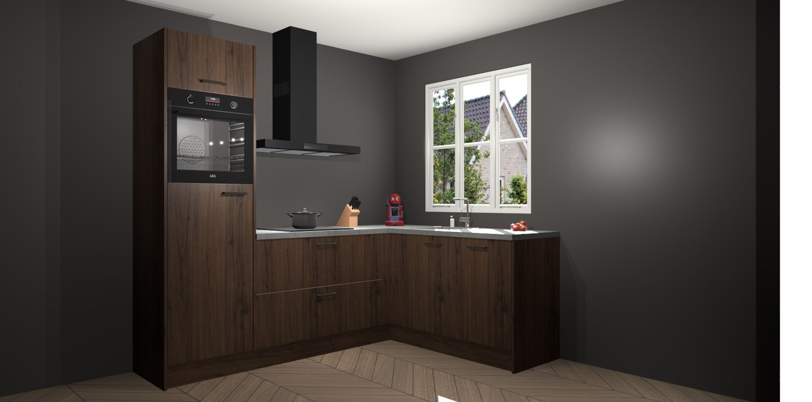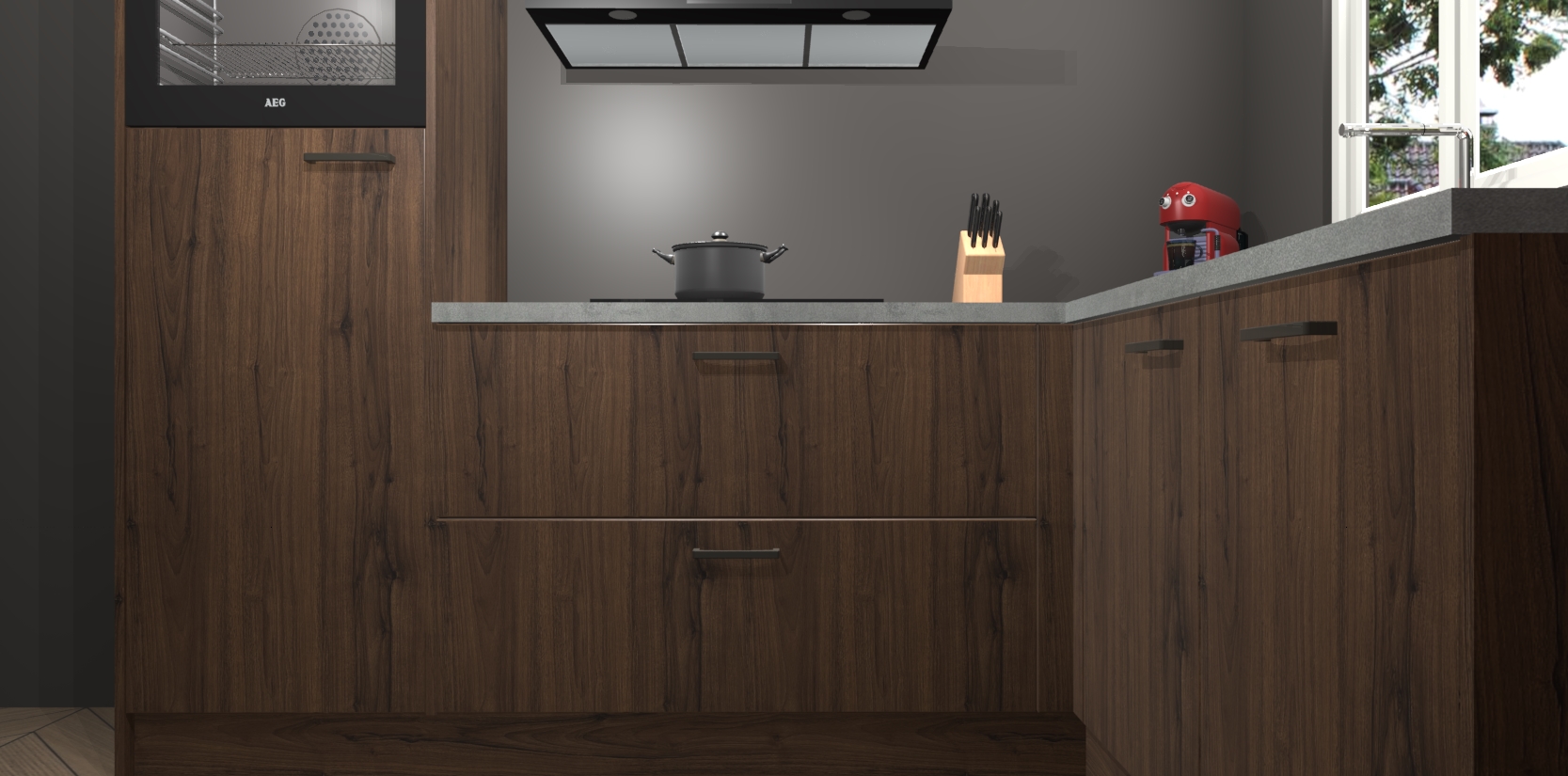 Dit model biedt u voldoende opbergruimte en vijf ingebouwde apparaten: een oven, inductiekookplaat, afzuigkap, vaatwasser en koelkast. Deze apparaten kunnen gemakkelijk worden geüpgrade naar AEG nadat u besteld heeft. De verschillende laden en kastjes bevatten softclose-deuren waardoor ze gezellig dichtvallen met een geruststellend helemaal geruisloos geluid. En dat is nog niet alles! We garanderen ook dat de prijs altijd laag blijft - dus haal nu uw Noten keuken Victoria terwijl het kan.