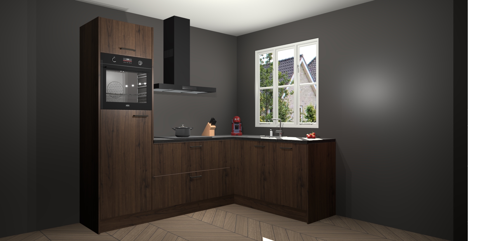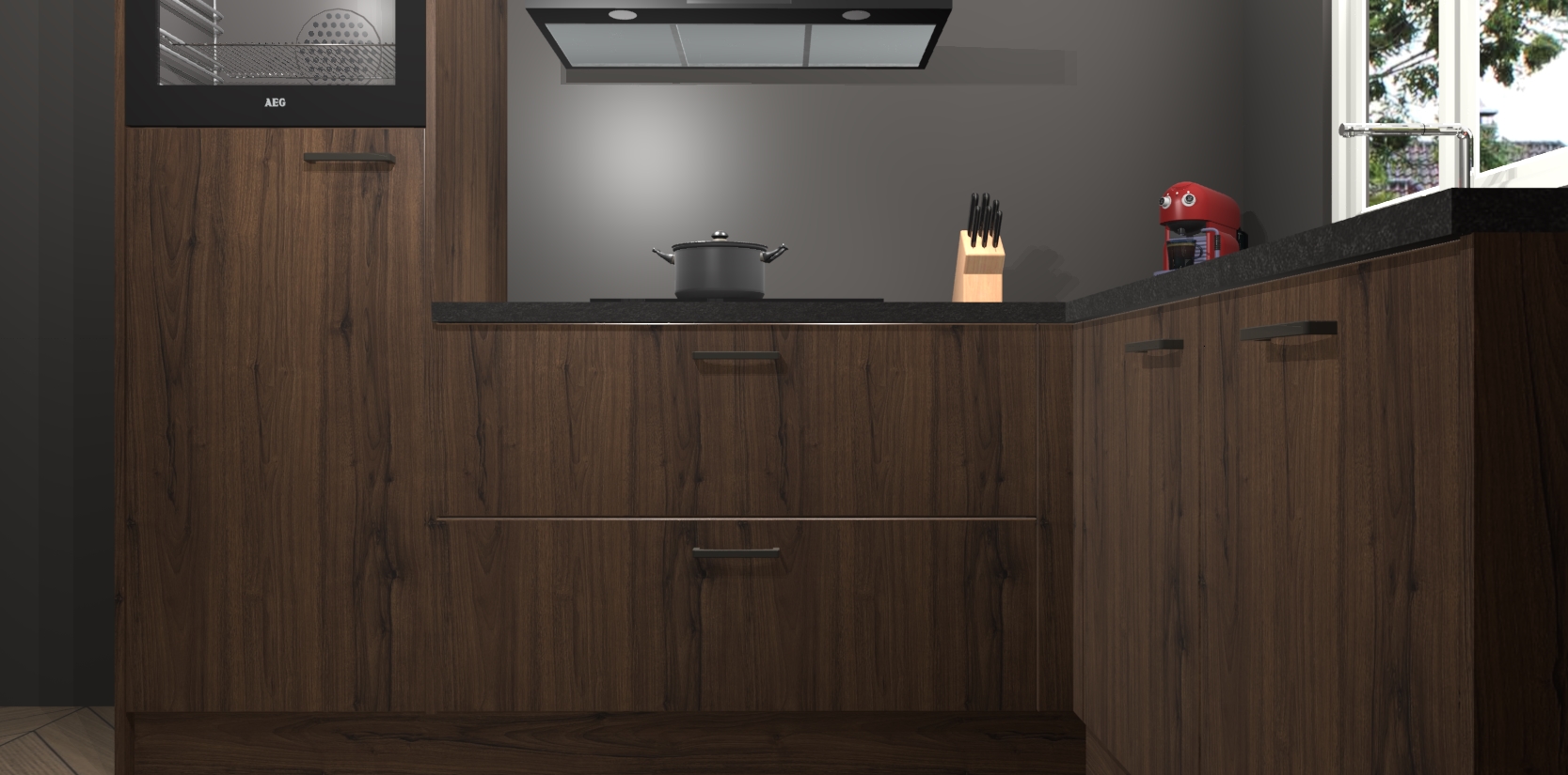 Dit model biedt u voldoende opbergruimte en vijf ingebouwde apparaten: een oven, inductiekookplaat, afzuigkap, vaatwasser en koelkast. Deze apparaten kunnen gemakkelijk worden geüpgrade naar AEG nadat u besteld heeft. De verschillende laden en kastjes bevatten softclose-deuren waardoor ze gezellig dichtvallen met een geruststellend helemaal geruisloos geluid. En dat is nog niet alles! We garanderen ook dat de prijs altijd laag blijft - dus haal nu uw Noten keuken Victoria terwijl het kan.