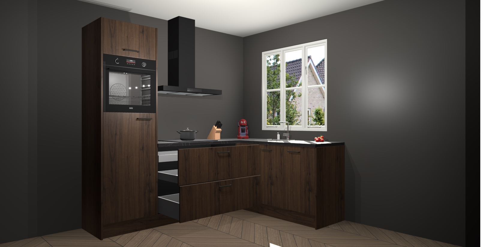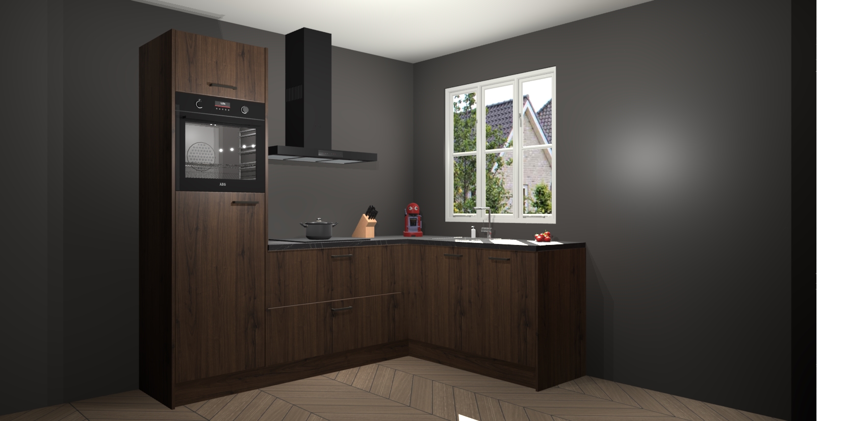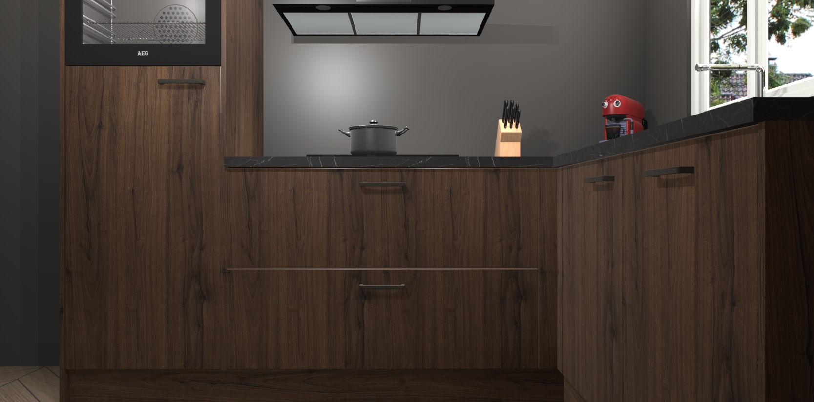 Dit model biedt u voldoende opbergruimte en vijf ingebouwde apparaten: een oven, inductiekookplaat, afzuigkap, vaatwasser en koelkast. Deze apparaten kunnen gemakkelijk worden geüpgrade naar AEG nadat u besteld heeft. De verschillende laden en kastjes bevatten softclose-deuren waardoor ze gezellig dichtvallen met een geruststellend helemaal geruisloos geluid. En dat is nog niet alles! We garanderen ook dat de prijs altijd laag blijft - dus haal nu uw Noten keuken Victoria terwijl het kan.