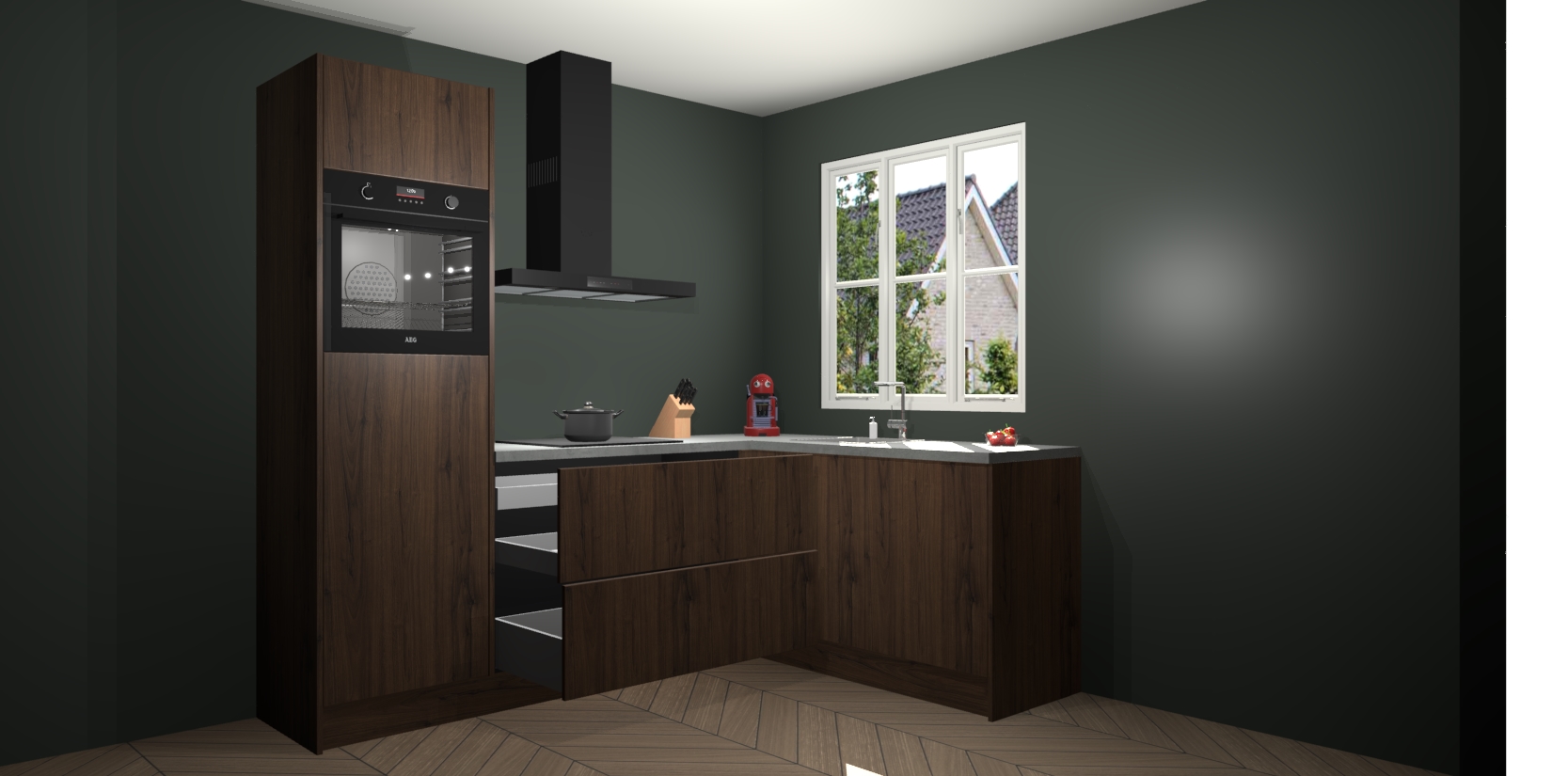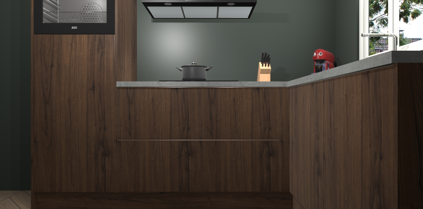 Dit model biedt u voldoende opbergruimte en vijf ingebouwde apparaten: een oven, inductiekookplaat, afzuigkap, vaatwasser en koelkast. Deze apparaten kunnen gemakkelijk worden geüpgrade naar AEG nadat u besteld heeft. De verschillende laden en kastjes bevatten softclose-deuren waardoor ze gezellig dichtvallen met een geruststellend helemaal geruisloos geluid. En dat is nog niet alles! We garanderen ook dat de prijs altijd laag blijft - dus haal nu uw Noten keuken Victoria terwijl het kan.