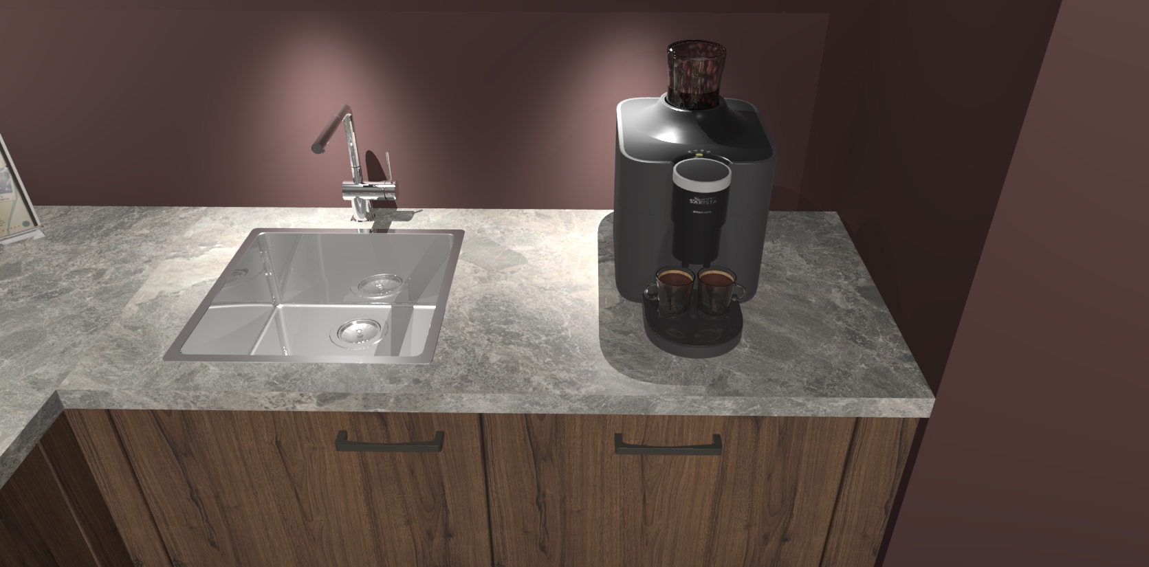 - De spoelbak is nog niet in gevreesd. Dit dient tijdens het werk gedaan te worden