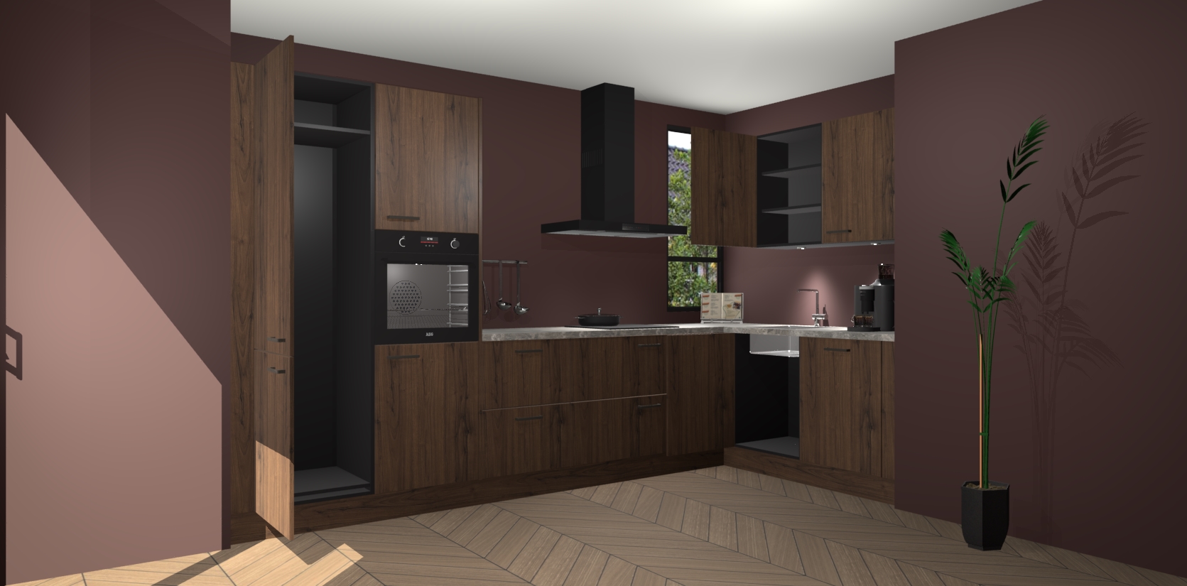 Welkom in uw nieuwe moderne keuken! Laat ons u voorstellen aan de Noten keuken Vlaanderen . Deze prachtige hoekkeuken straalt exclusiviteit en luxe uit als geen ander. Het strakke design, de tijdloze kleuren en het model maken van deze keuken een moderne klassieker. En met voldoende opbergruimte heeft deze keuken echt voor ieder wat wils.