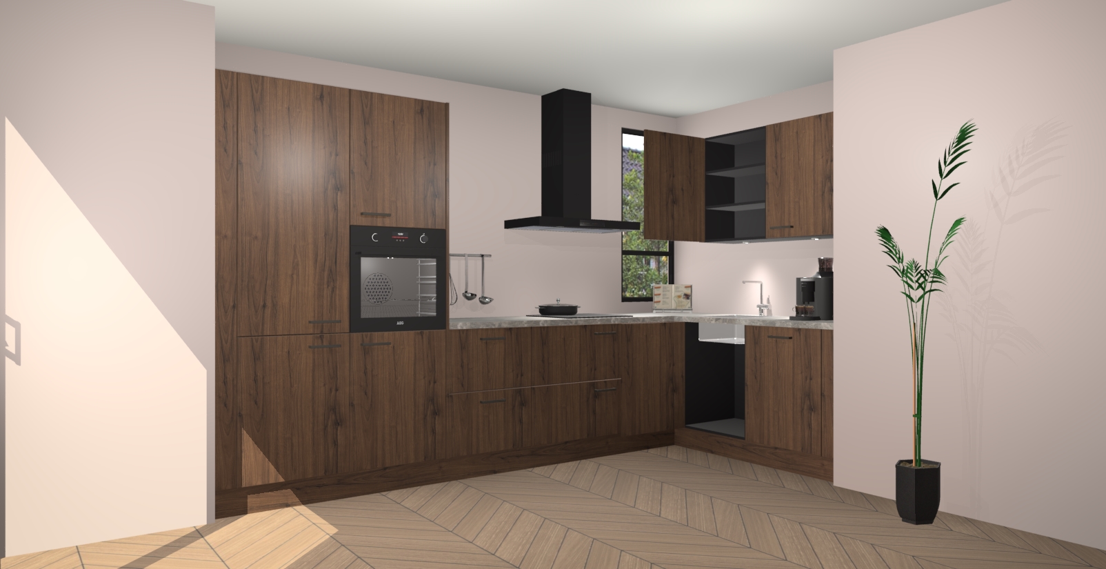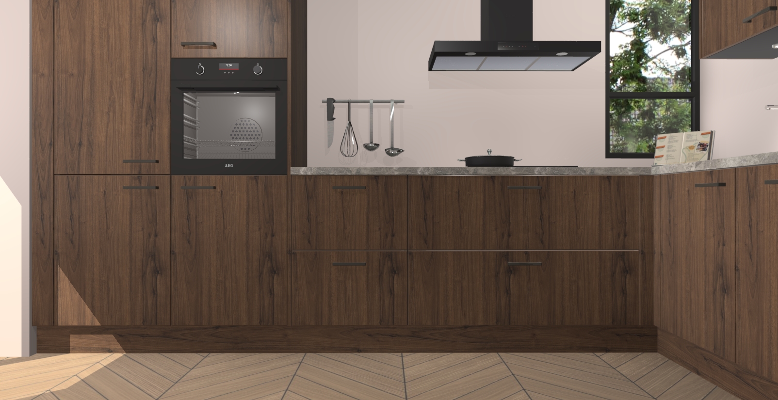 Welkom in uw nieuwe moderne keuken! Laat ons u voorstellen aan de Noten keuken Vlaanderen . Deze prachtige hoekkeuken straalt exclusiviteit en luxe uit als geen ander. Het strakke design, de tijdloze kleuren en het model maken van deze keuken een moderne klassieker. En met voldoende opbergruimte heeft deze keuken echt voor ieder wat wils.