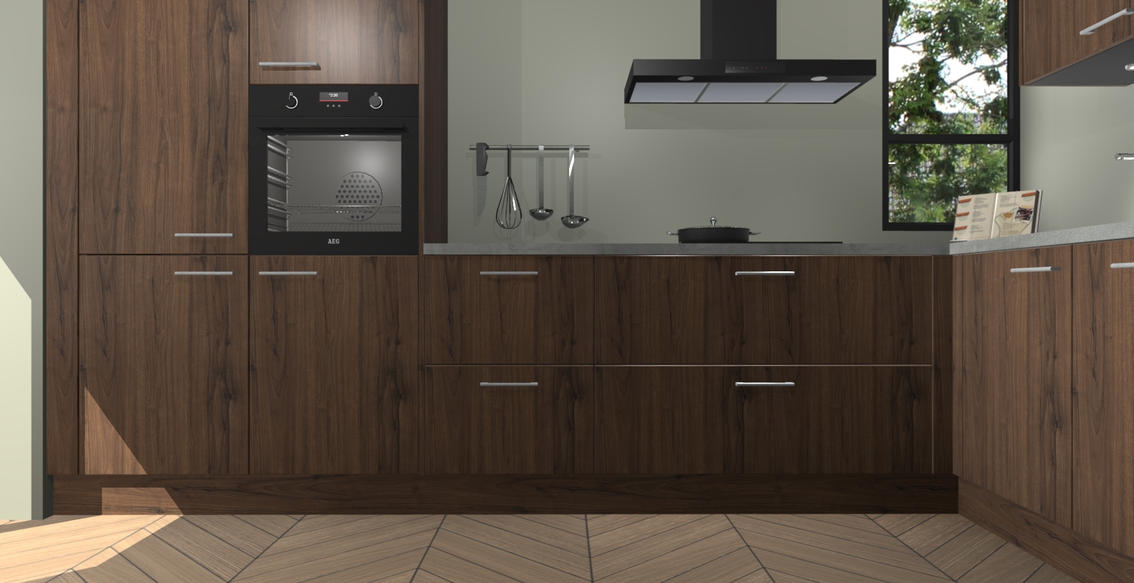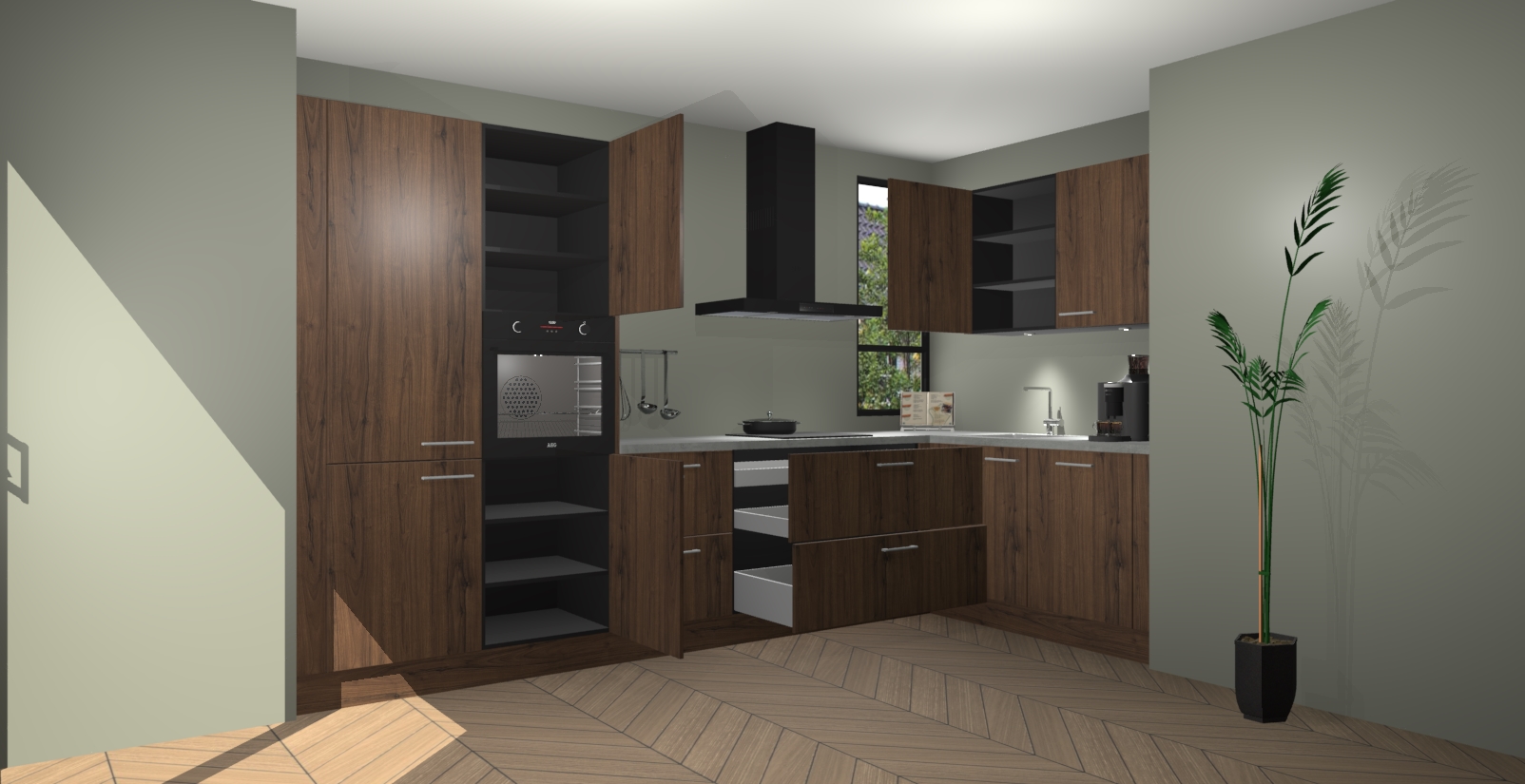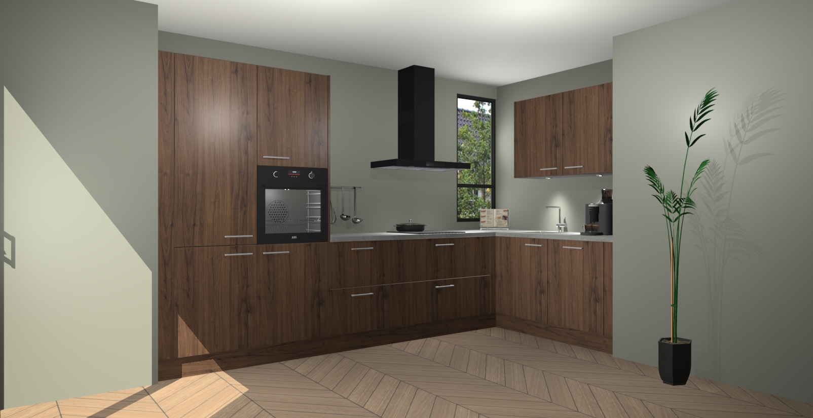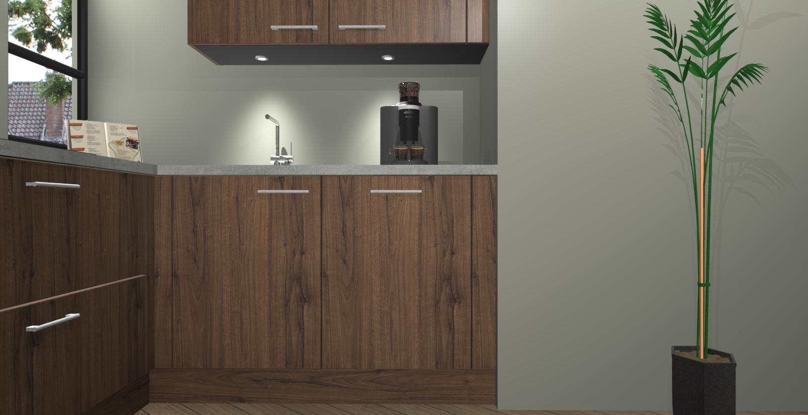 Welkom in uw nieuwe moderne keuken! Laat ons u voorstellen aan de Noten keuken Vlaanderen . Deze prachtige hoekkeuken straalt exclusiviteit en luxe uit als geen ander. Het strakke design, de tijdloze kleuren en het model maken van deze keuken een moderne klassieker. En met voldoende opbergruimte heeft deze keuken echt voor ieder wat wils.