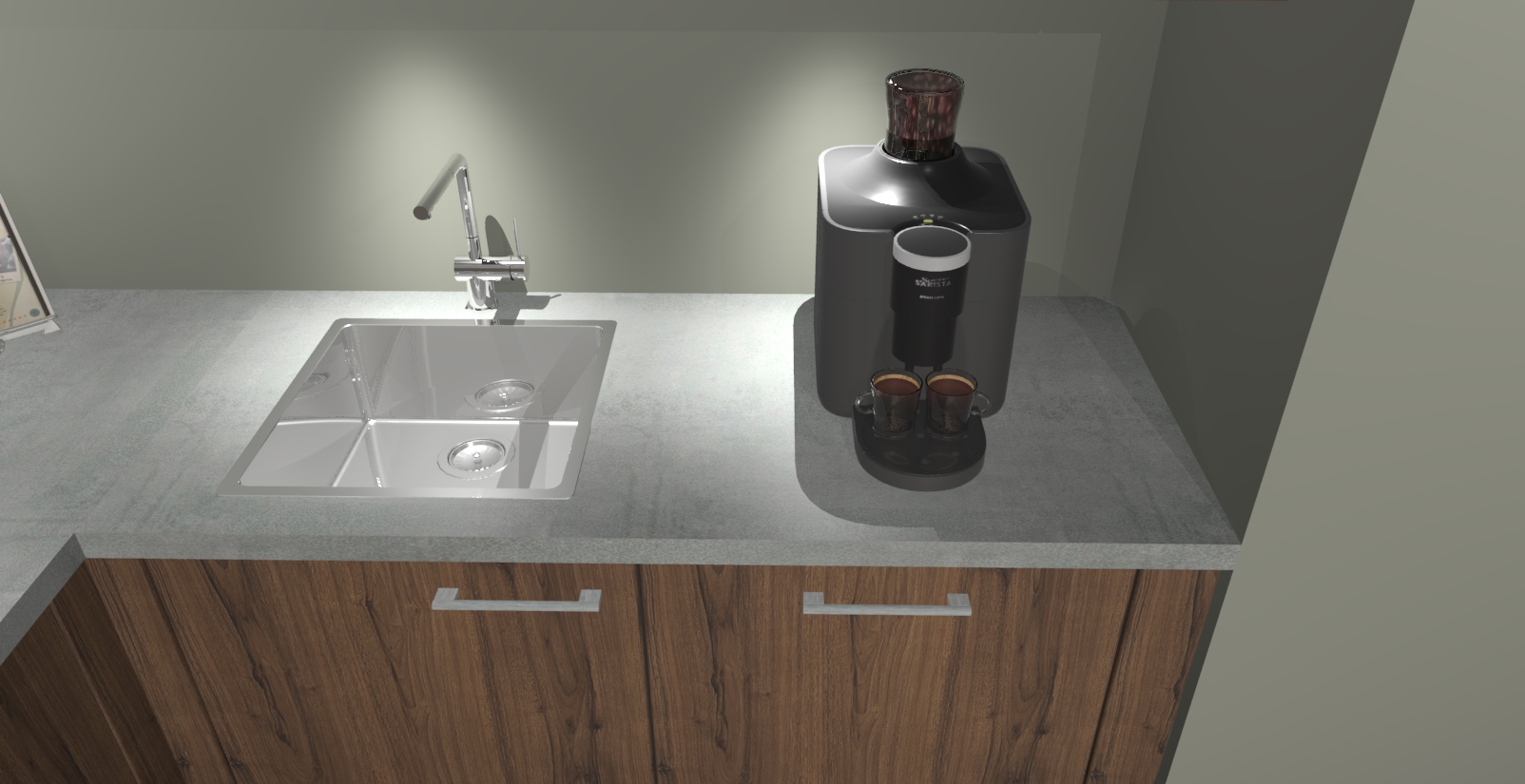 - De spoelbak is nog niet in gevreesd. Dit dient tijdens het werk gedaan te worden
