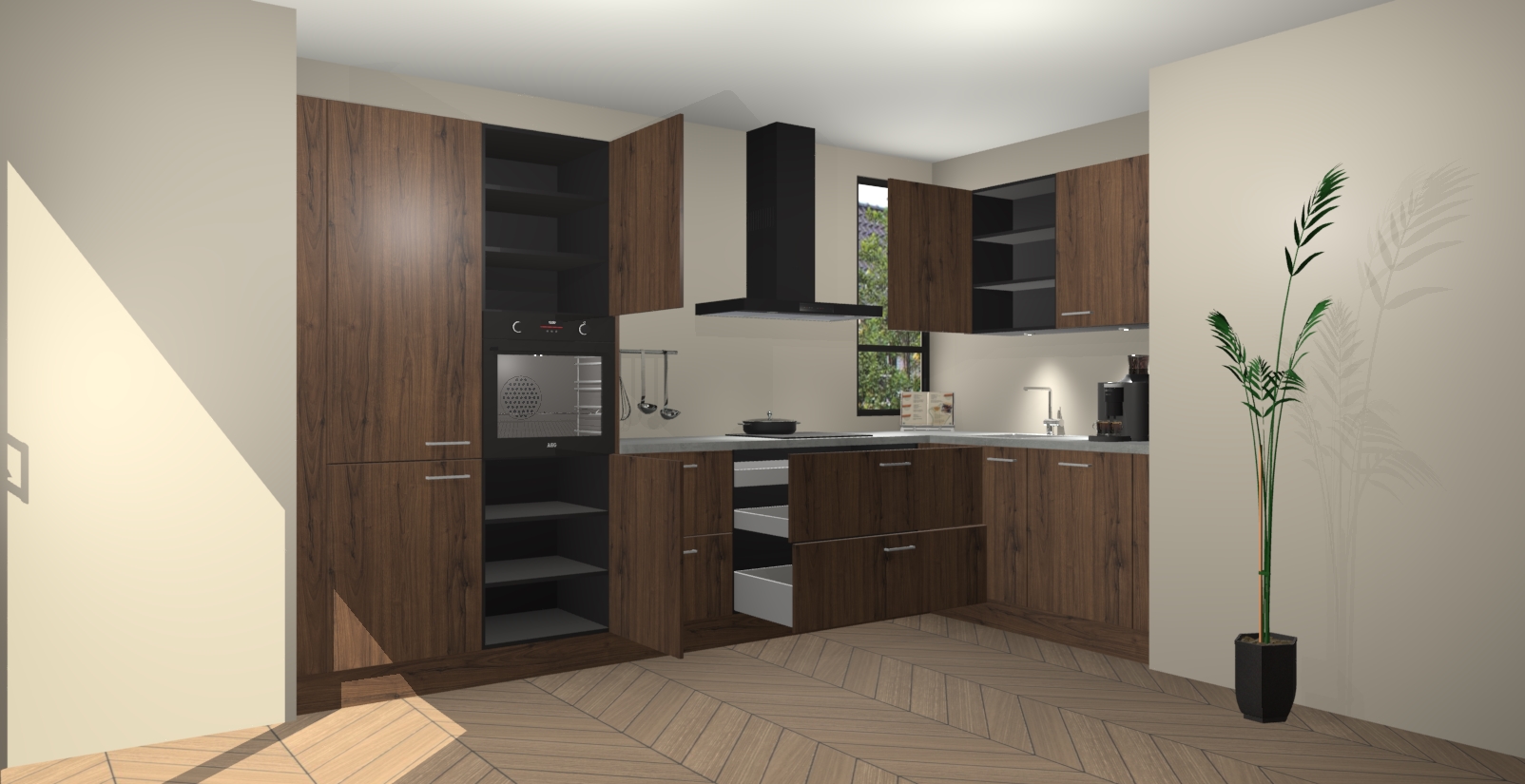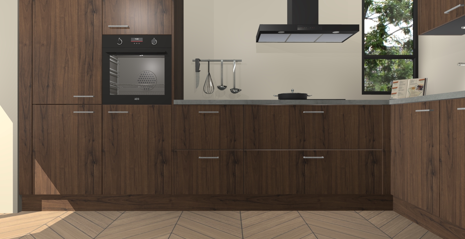 Welkom in uw nieuwe moderne keuken! Laat ons u voorstellen aan de Noten keuken Vlaanderen . Deze prachtige hoekkeuken straalt exclusiviteit en luxe uit als geen ander. Het strakke design, de tijdloze kleuren en het model maken van deze keuken een moderne klassieker. En met voldoende opbergruimte heeft deze keuken echt voor ieder wat wils.