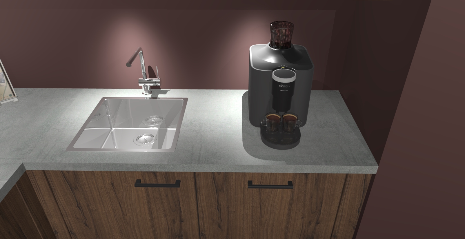 - De spoelbak is nog niet in gevreesd. Dit dient tijdens het werk gedaan te worden