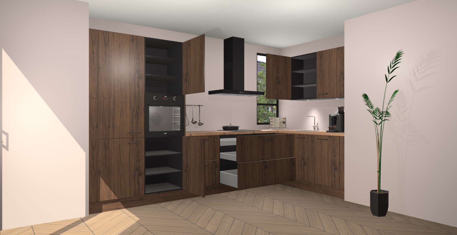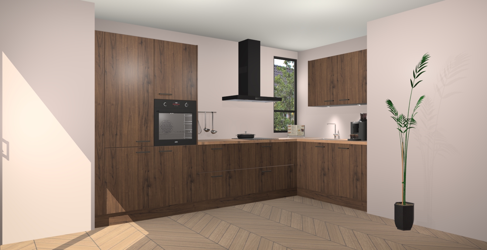 Welkom in uw nieuwe moderne keuken! Laat ons u voorstellen aan de Noten keuken Vlaanderen . Deze prachtige hoekkeuken straalt exclusiviteit en luxe uit als geen ander. Het strakke design, de tijdloze kleuren en het model maken van deze keuken een moderne klassieker. En met voldoende opbergruimte heeft deze keuken echt voor ieder wat wils.