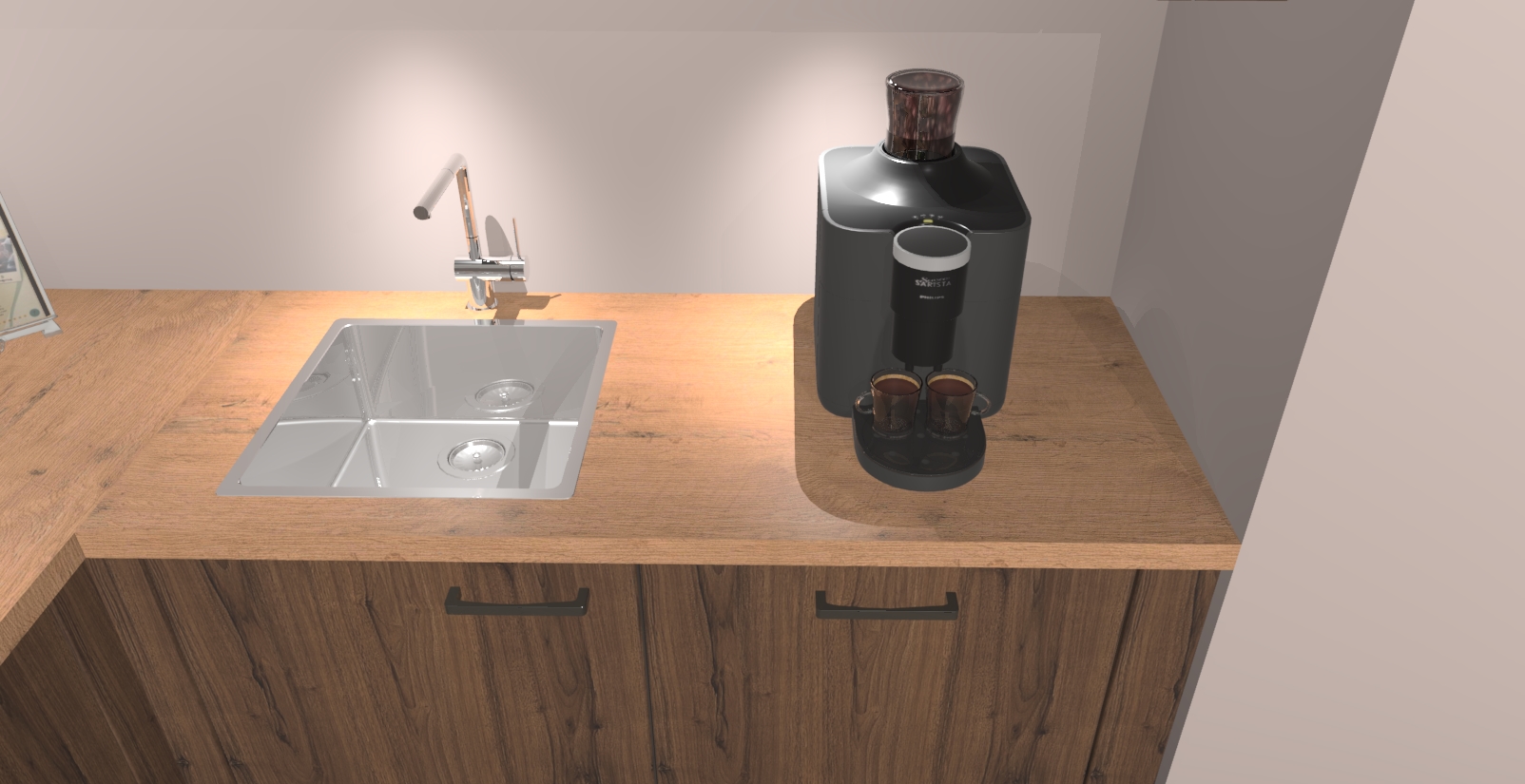 - De spoelbak is nog niet in gevreesd. Dit dient tijdens het werk gedaan te worden