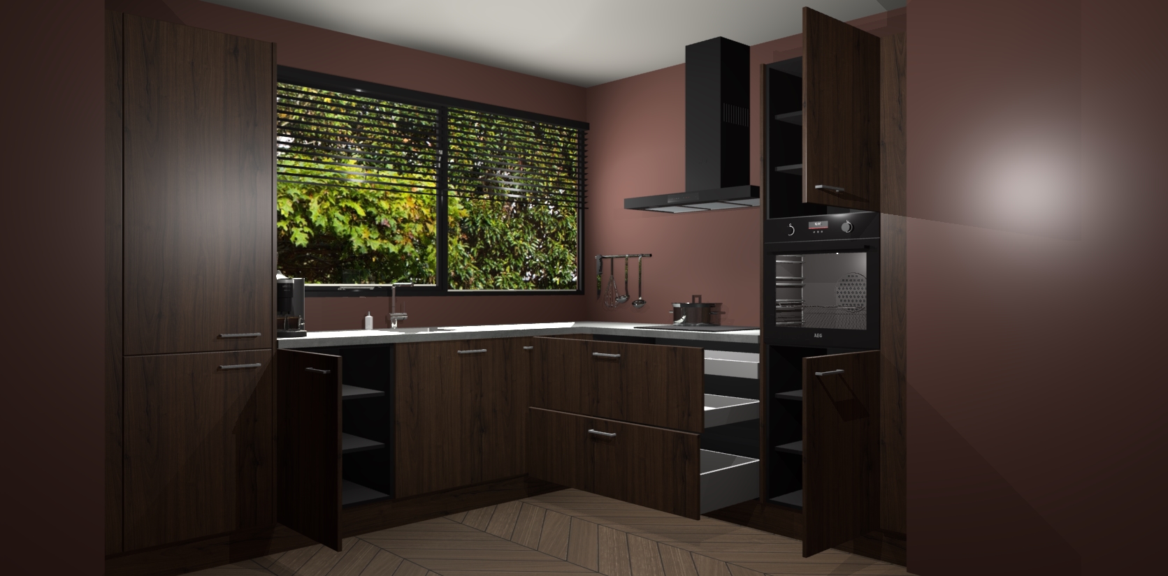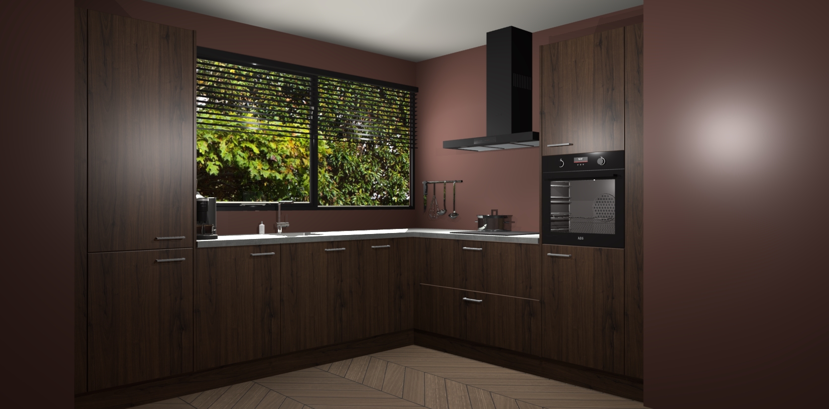 Wij presenteren de revolutie in keukens: de noten keuken Vogar. Met modern design, een tijdloos uiterlijk en kasten die al voor gemonteerd worden geleverd, laat deze stijlvolle keuken uw kookervaring op een hele nieuwe manier transformeren.