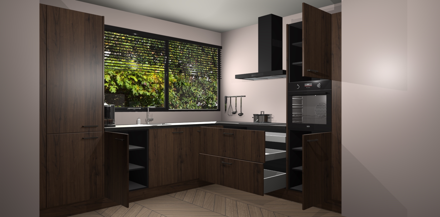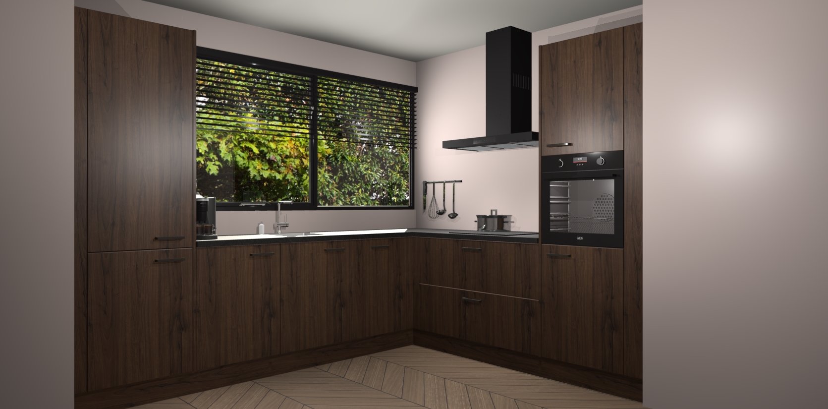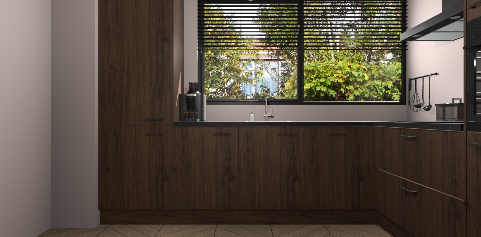 Wij presenteren de revolutie in keukens: de noten keuken Vogar. Met modern design, een tijdloos uiterlijk en kasten die al voor gemonteerd worden geleverd, laat deze stijlvolle keuken uw kookervaring op een hele nieuwe manier transformeren.