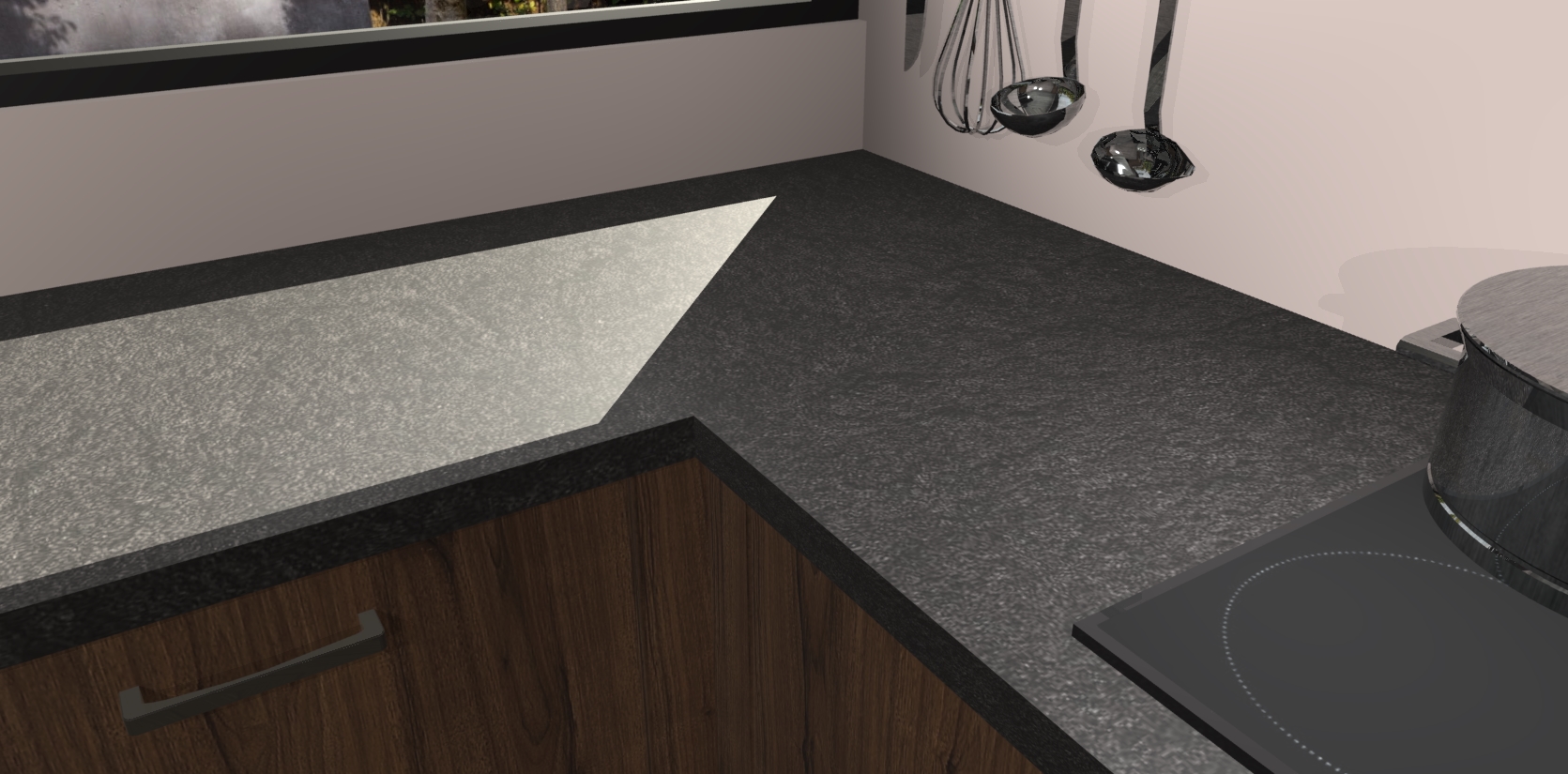 • Bij een hoekwerkblad zijn de hoeken in gevreesd en op maat gemaakt