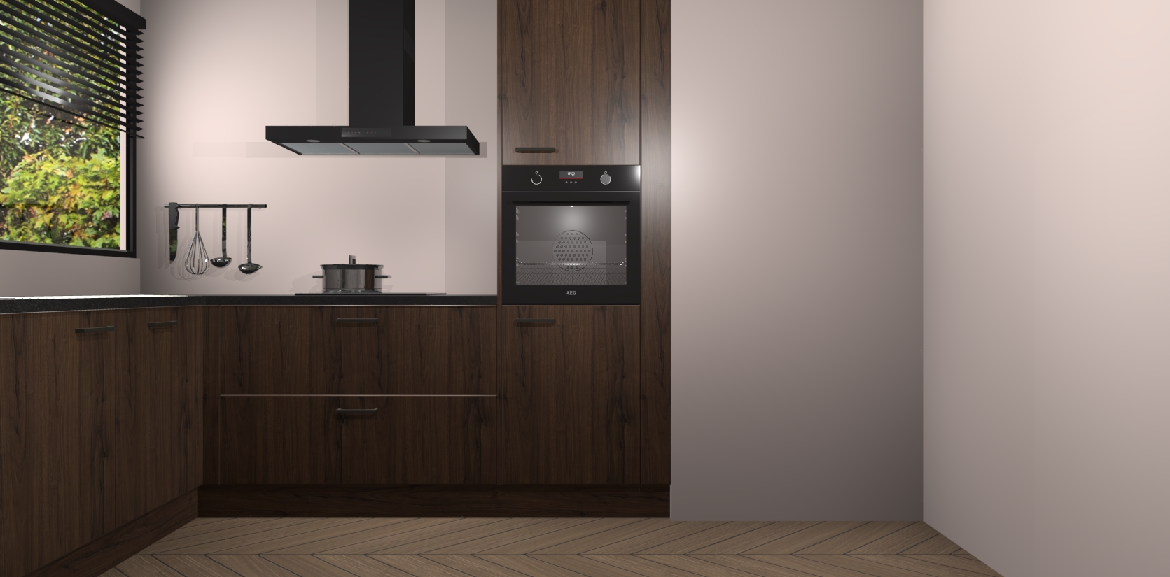 Met een modern, tijdloos design en ruime opslagruimte, zult u zich in no-time thuis voelen in uw nieuwe keuken. Uw leven wordt eenvoudiger met de soft-close deuren die voor het ultieme stille comfort zorgen - geen geluid dat u stoort terwijl u kookt. Ook is de keuken voorzien van 5 ingebouwde apparaten: een oven, inductie kookplaat, afzuigkap, vaatwasser en koelkast. Deze kunnen gemakkelijk na bestelling worden bijgewerkt naar AEG - waardoor uw luxe ervaring compleet is.