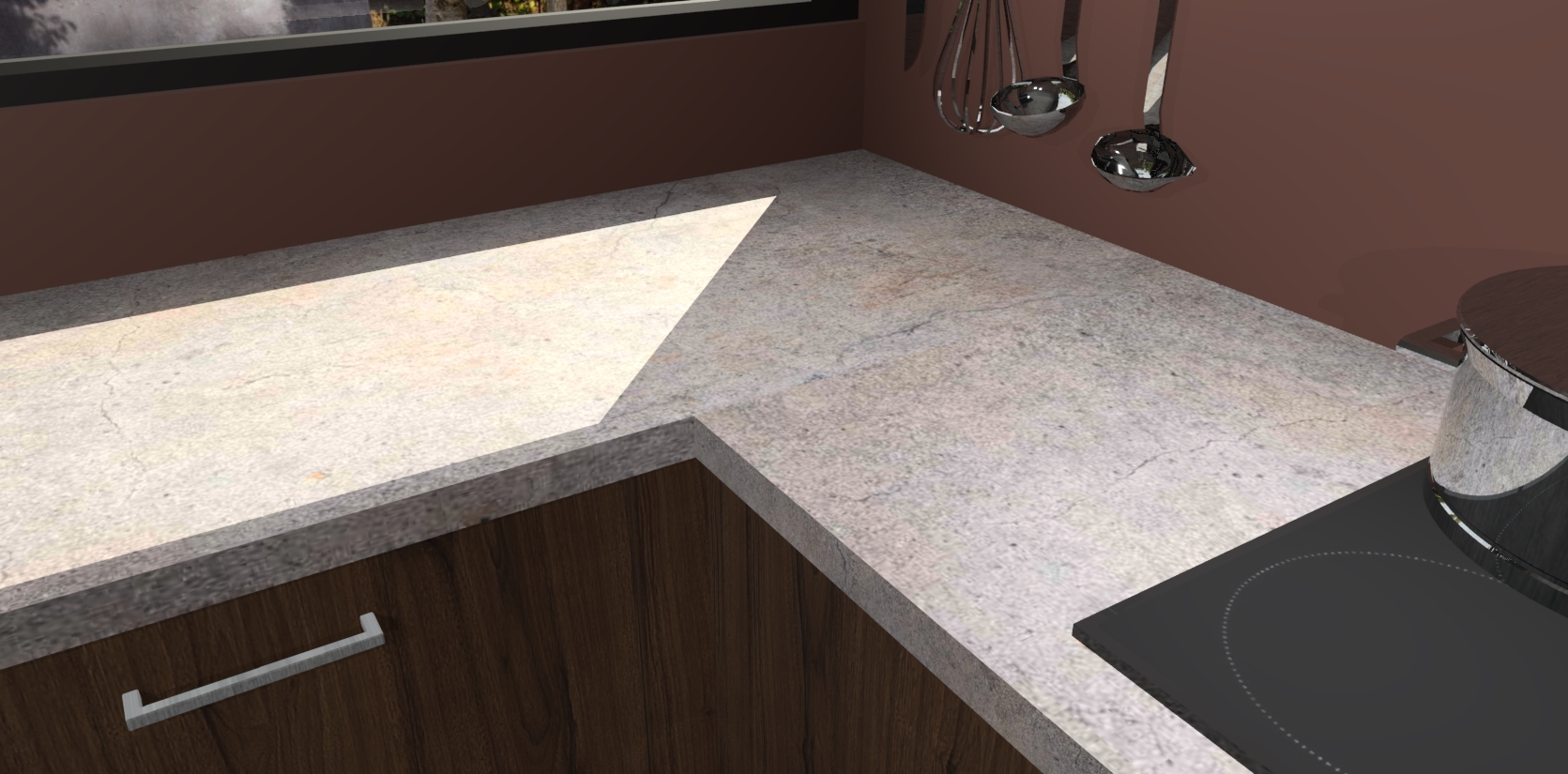 - Bij een hoekwerkblad zijn de hoeken in gevreesd en op maat gemaakt