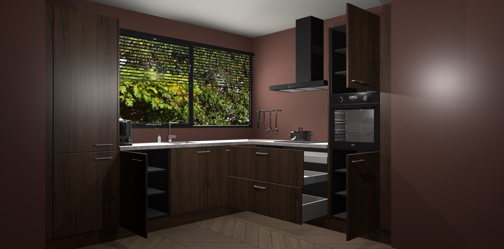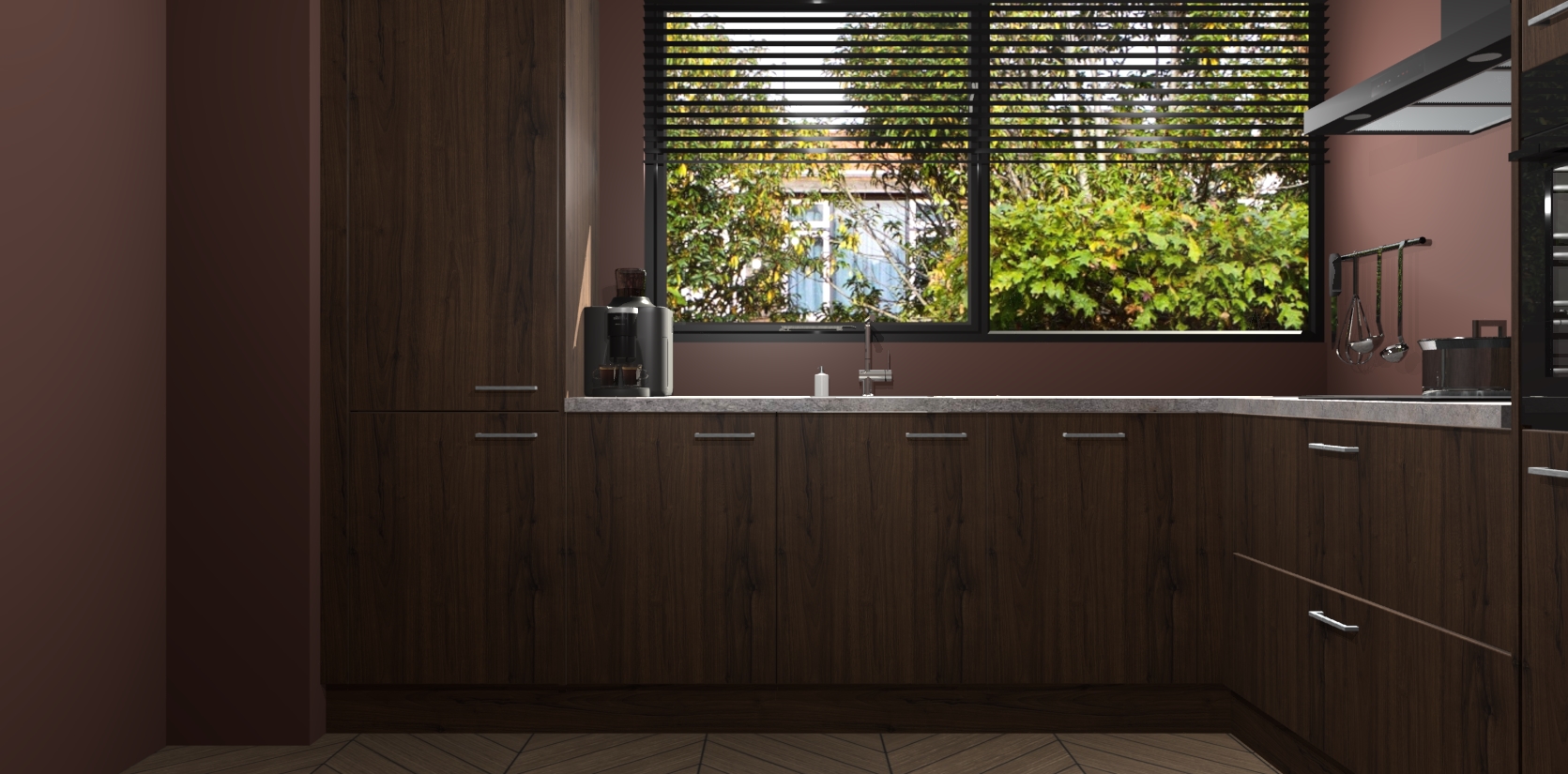 Wij presenteren de revolutie in keukens: de noten keuken Vogar. Met modern design, een tijdloos uiterlijk en kasten die al voor gemonteerd worden geleverd, laat deze stijlvolle keuken uw kookervaring op een hele nieuwe manier transformeren.