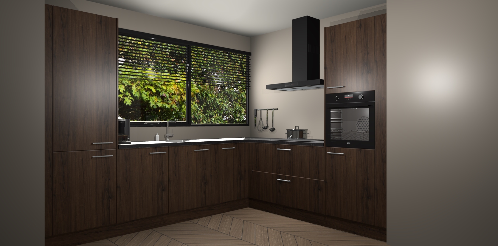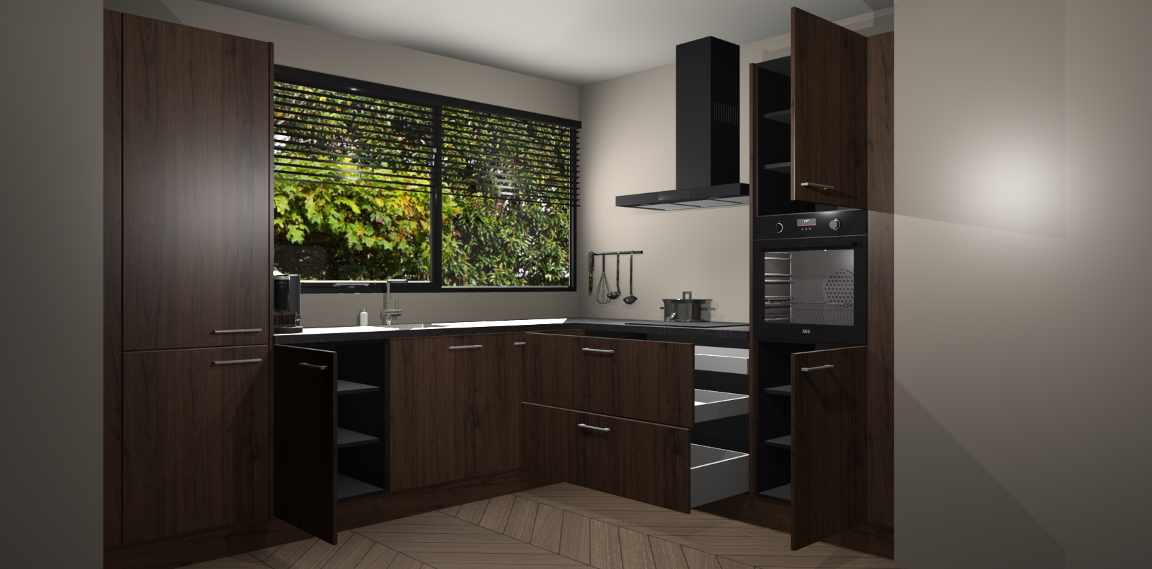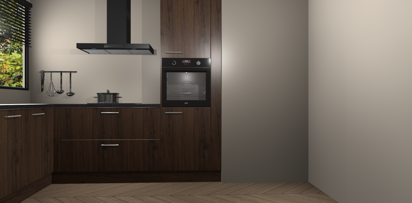 Met een modern, tijdloos design en ruime opslagruimte, zult u zich in no-time thuis voelen in uw nieuwe keuken. Uw leven wordt eenvoudiger met de soft-close deuren die voor het ultieme stille comfort zorgen - geen geluid dat u stoort terwijl u kookt. Ook is de keuken voorzien van 5 ingebouwde apparaten: een oven, inductie kookplaat, afzuigkap, vaatwasser en koelkast. Deze kunnen gemakkelijk na bestelling worden bijgewerkt naar AEG - waardoor uw luxe ervaring compleet is.