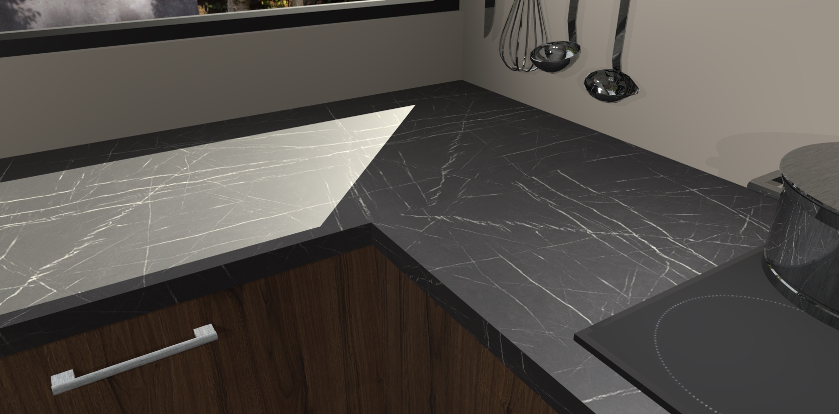 - Bij een hoekwerkblad zijn de hoeken in gevreesd en op maat gemaakt