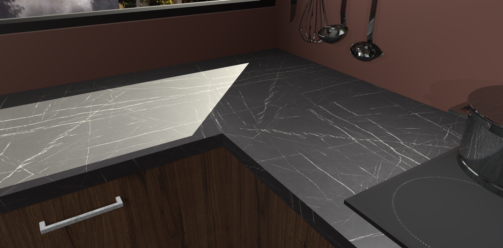 - Bij een hoekwerkblad zijn de hoeken in gevreesd en op maat gemaakt