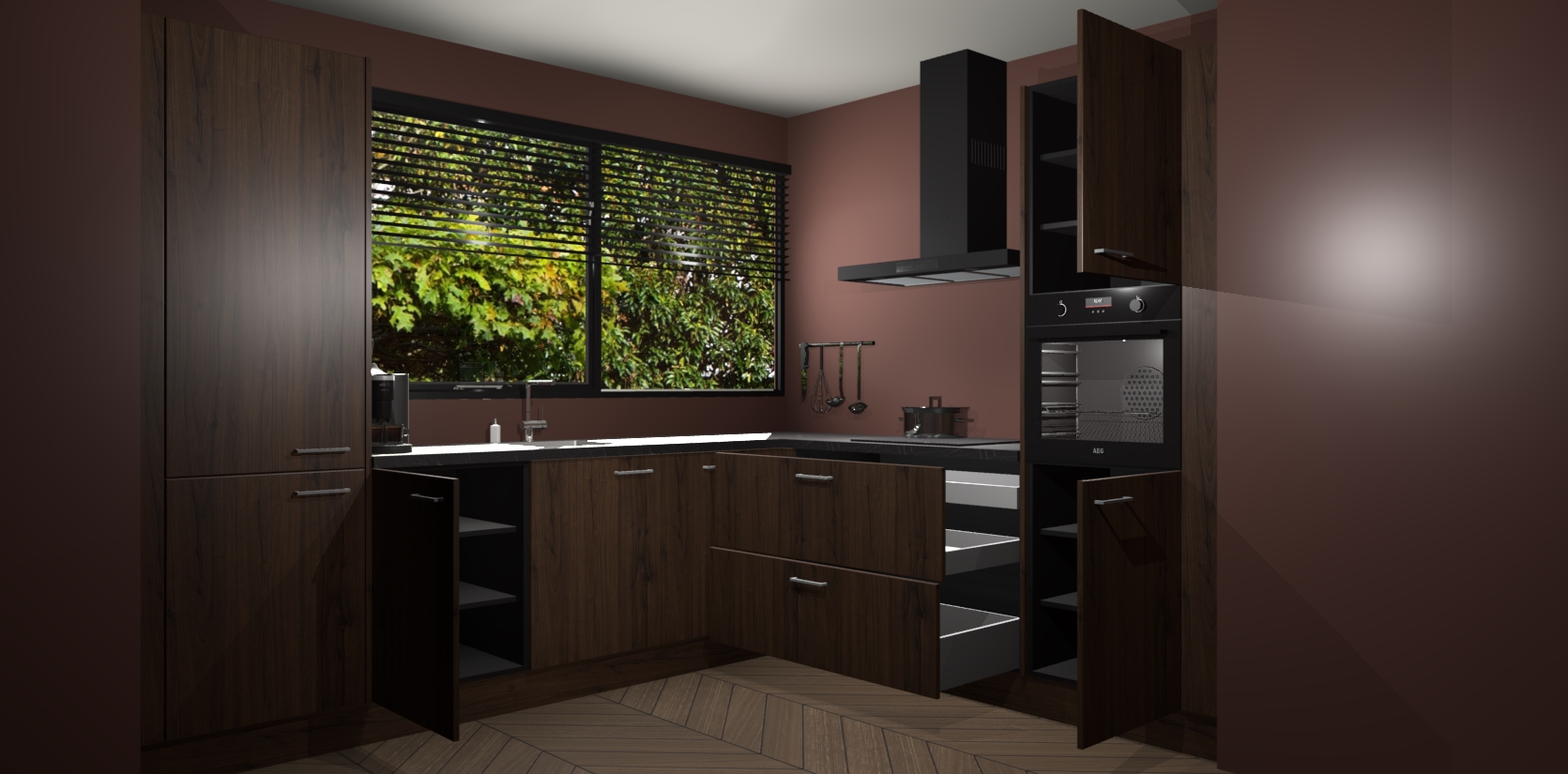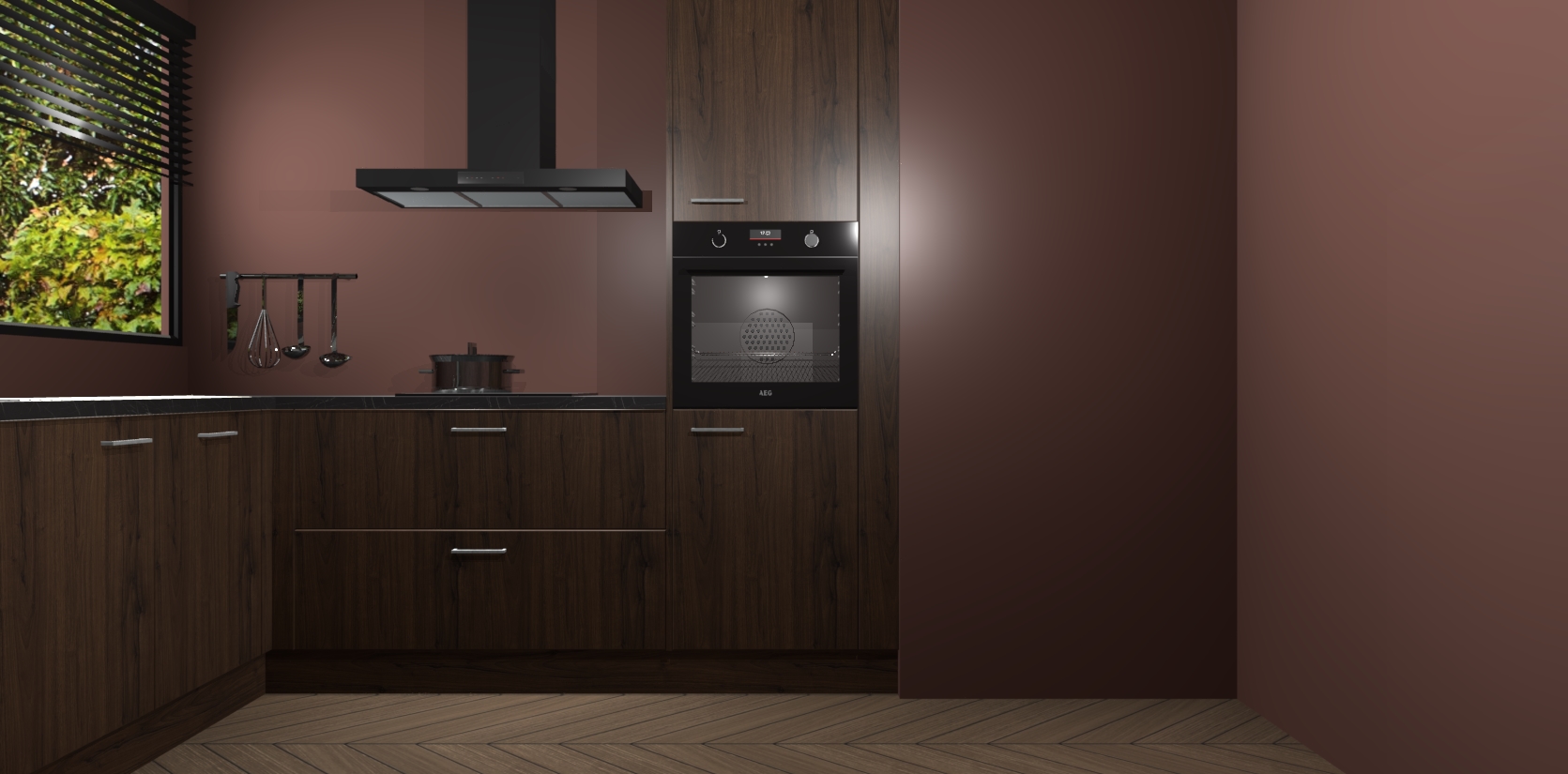 Met een modern, tijdloos design en ruime opslagruimte, zult u zich in no-time thuis voelen in uw nieuwe keuken. Uw leven wordt eenvoudiger met de soft-close deuren die voor het ultieme stille comfort zorgen - geen geluid dat u stoort terwijl u kookt. Ook is de keuken voorzien van 5 ingebouwde apparaten: een oven, inductie kookplaat, afzuigkap, vaatwasser en koelkast. Deze kunnen gemakkelijk na bestelling worden bijgewerkt naar AEG - waardoor uw luxe ervaring compleet is.