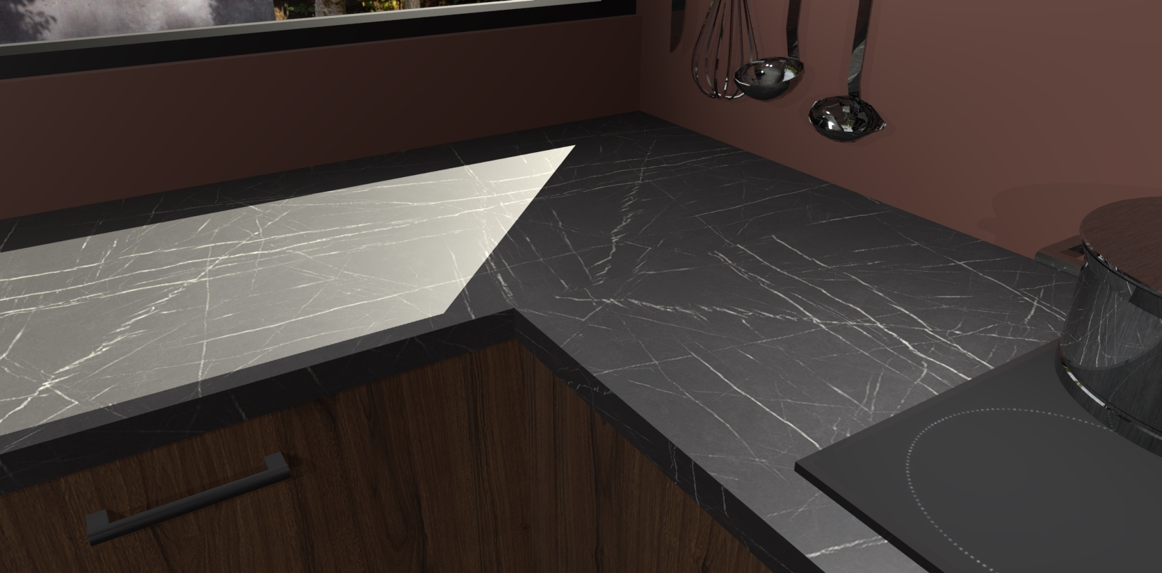 - Bij een hoekwerkblad zijn de hoeken in gevreesd en op maat gemaakt