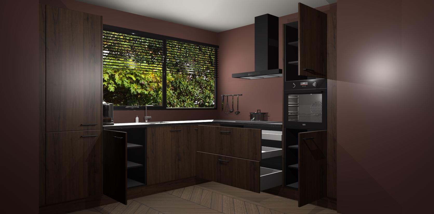 Wij presenteren de revolutie in keukens: de noten keuken Vogar. Met modern design, een tijdloos uiterlijk en kasten die al voor gemonteerd worden geleverd, laat deze stijlvolle keuken uw kookervaring op een hele nieuwe manier transformeren.