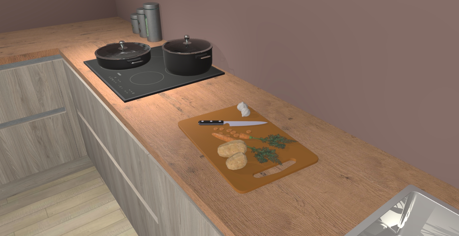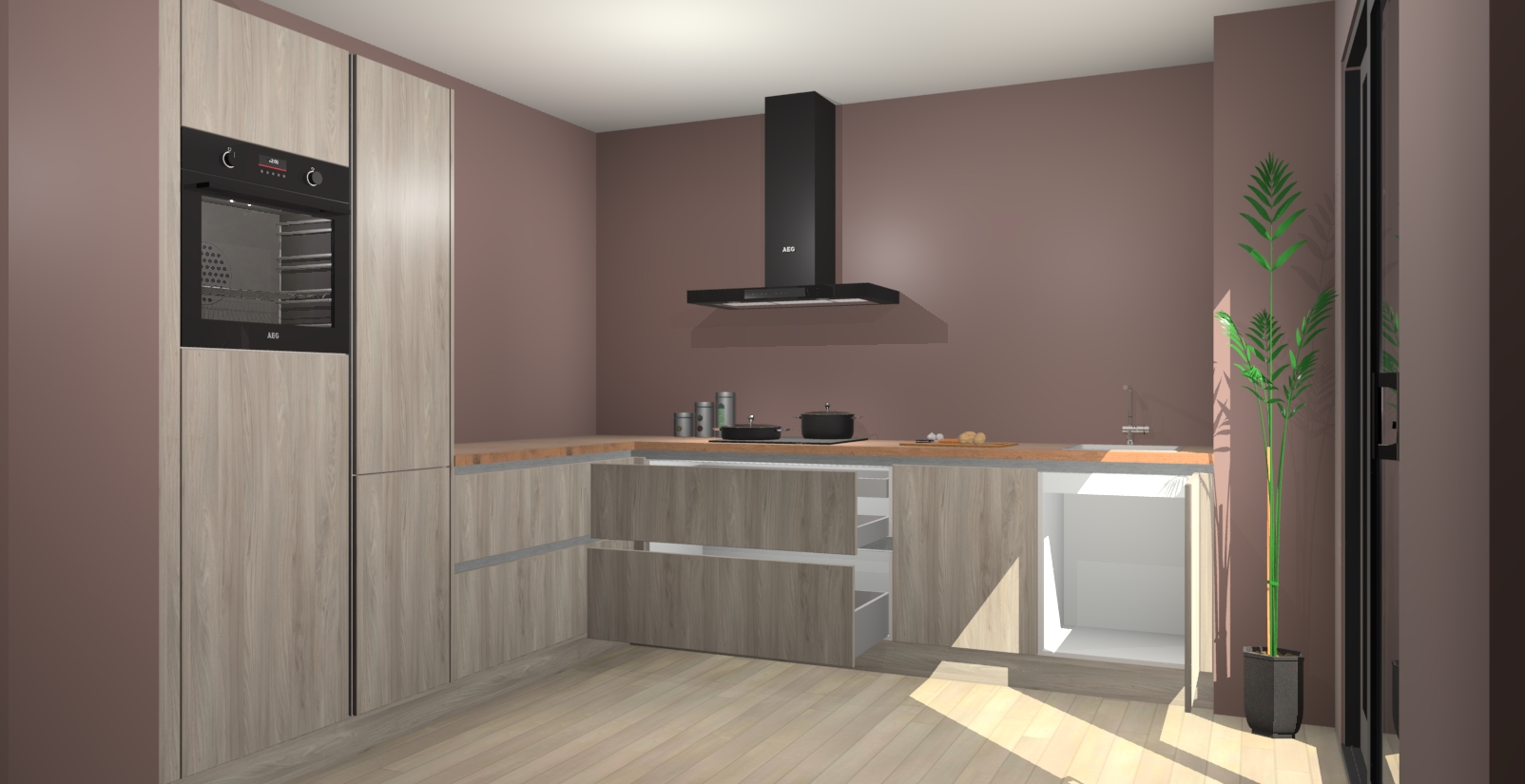 Inclusief plinten, stelpoten en werkblad