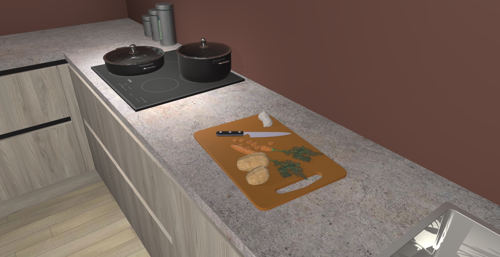 Inclusief plinten, stelpoten en werkblad