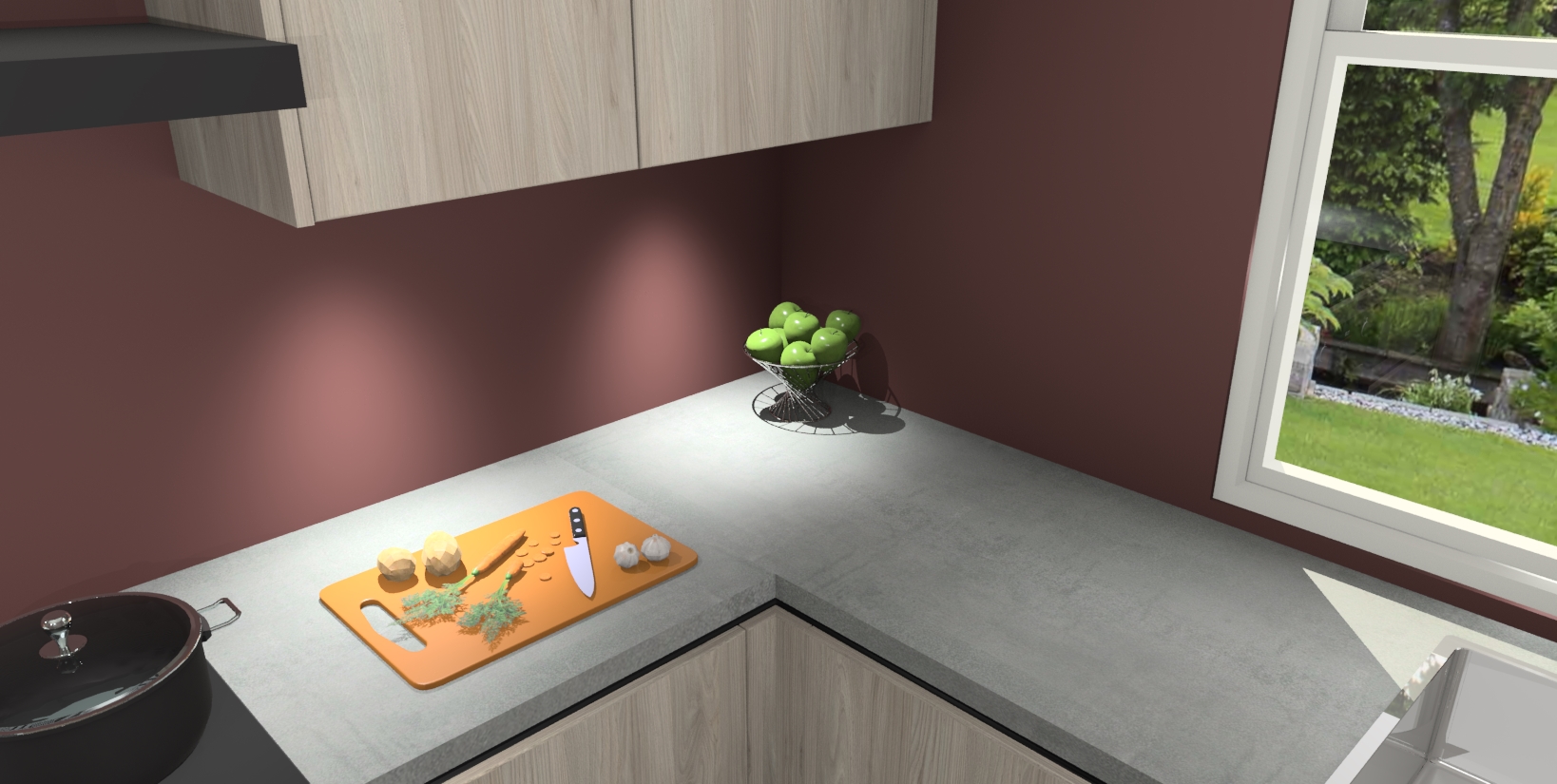- Bij een hoekwerkblad zijn de hoeken in gevreesd en op maat gemaakt