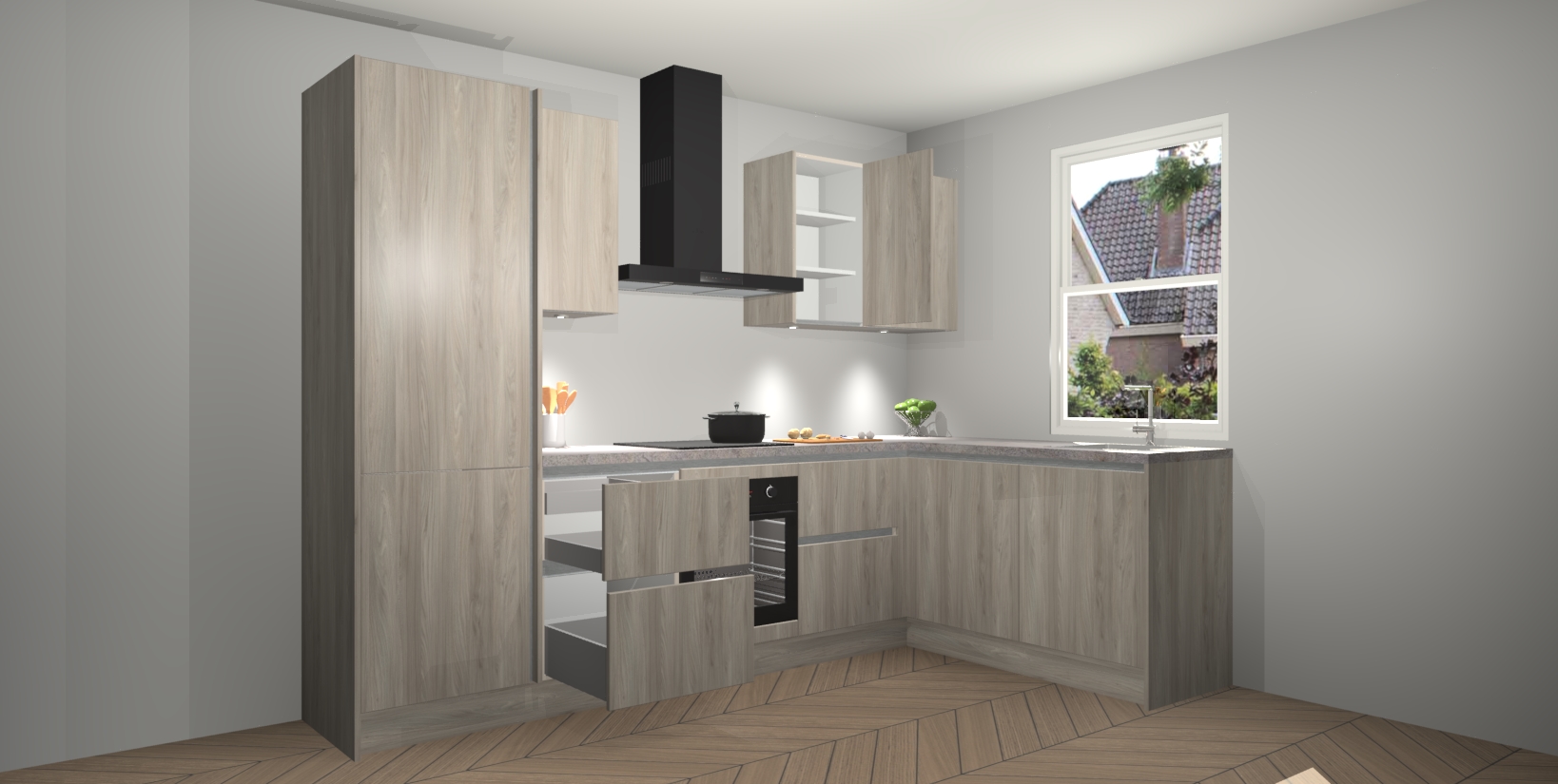 Inclusief plinten, stelpoten en werkblad
